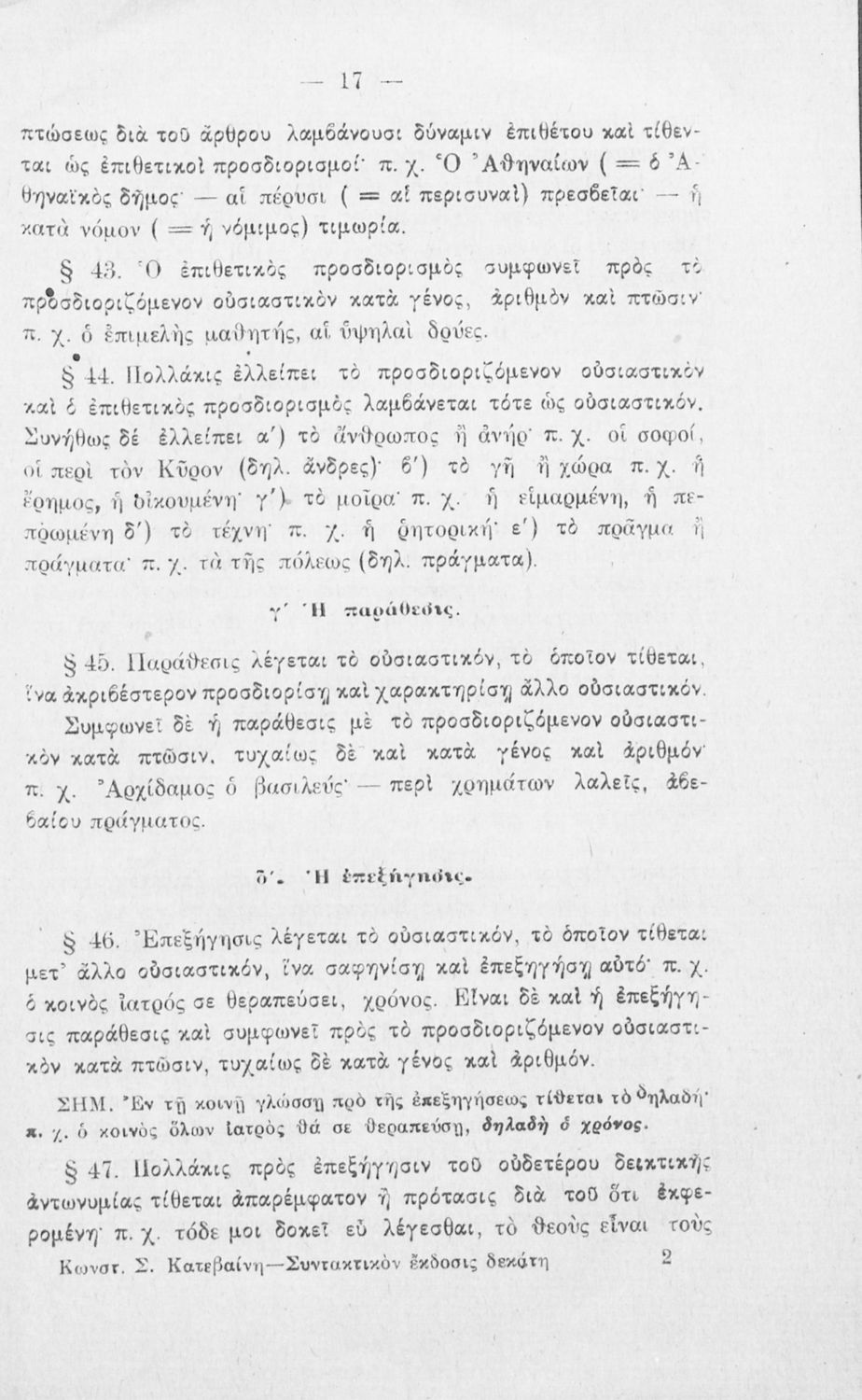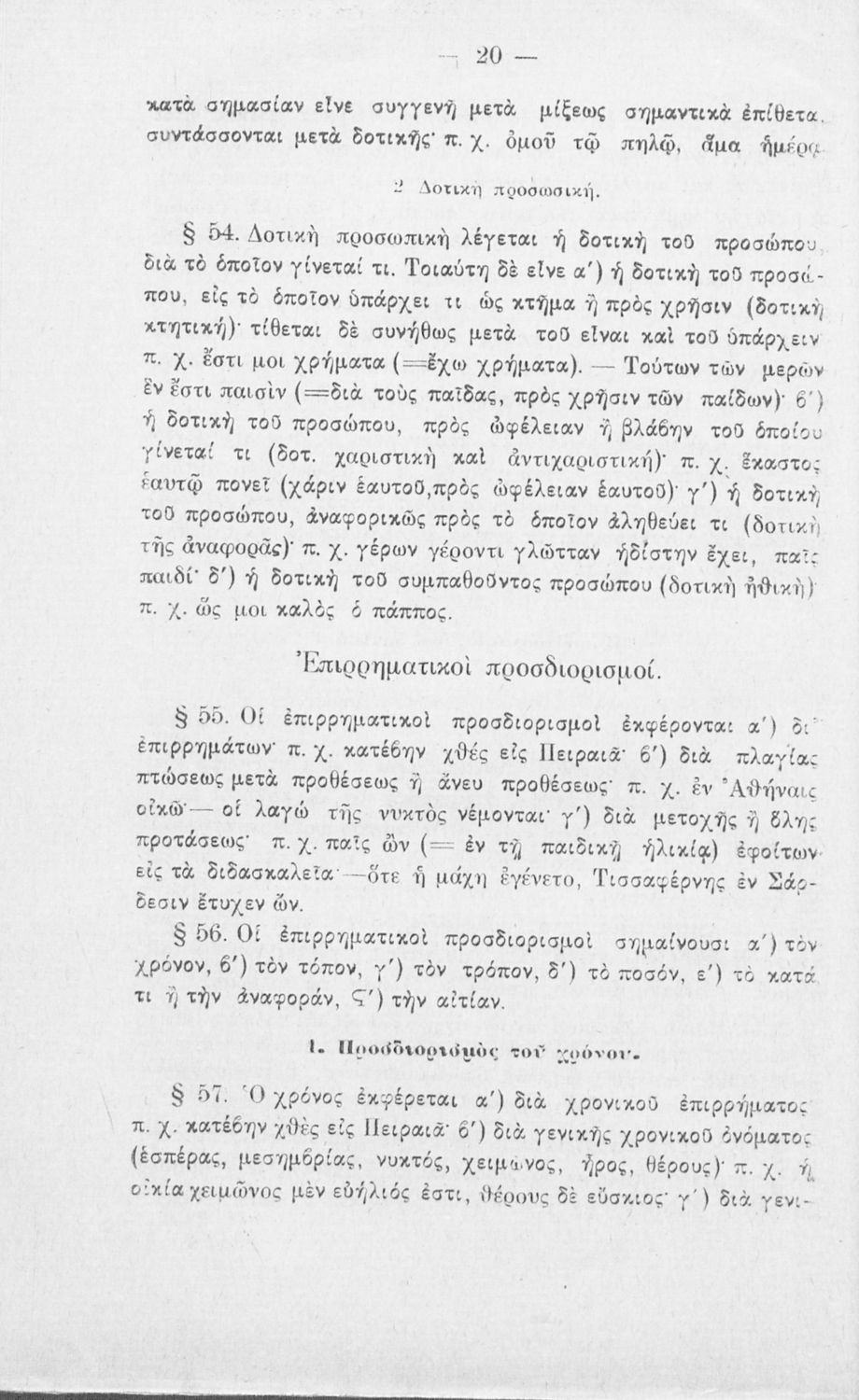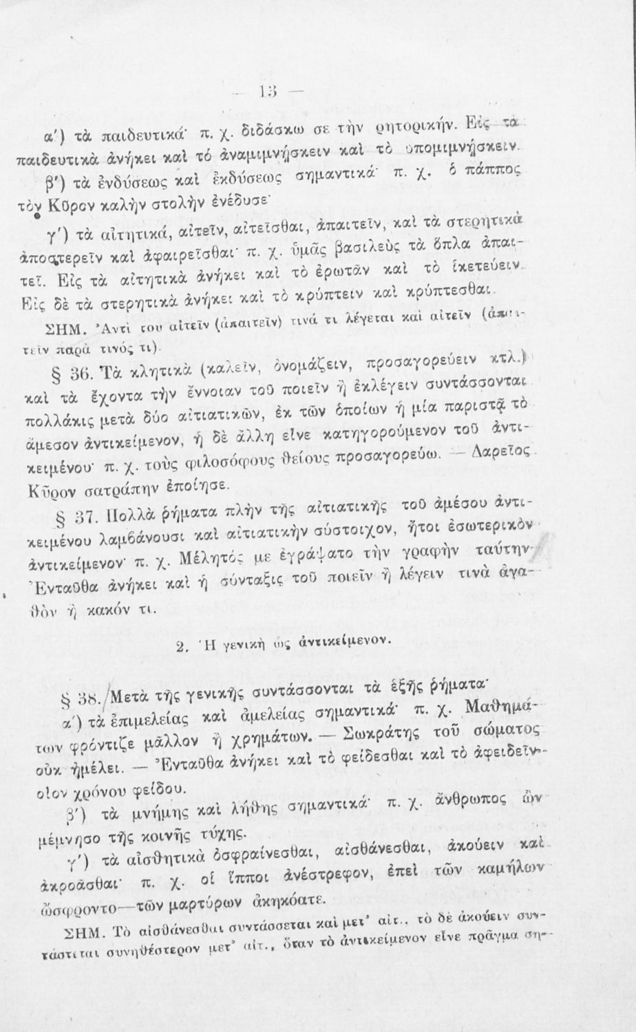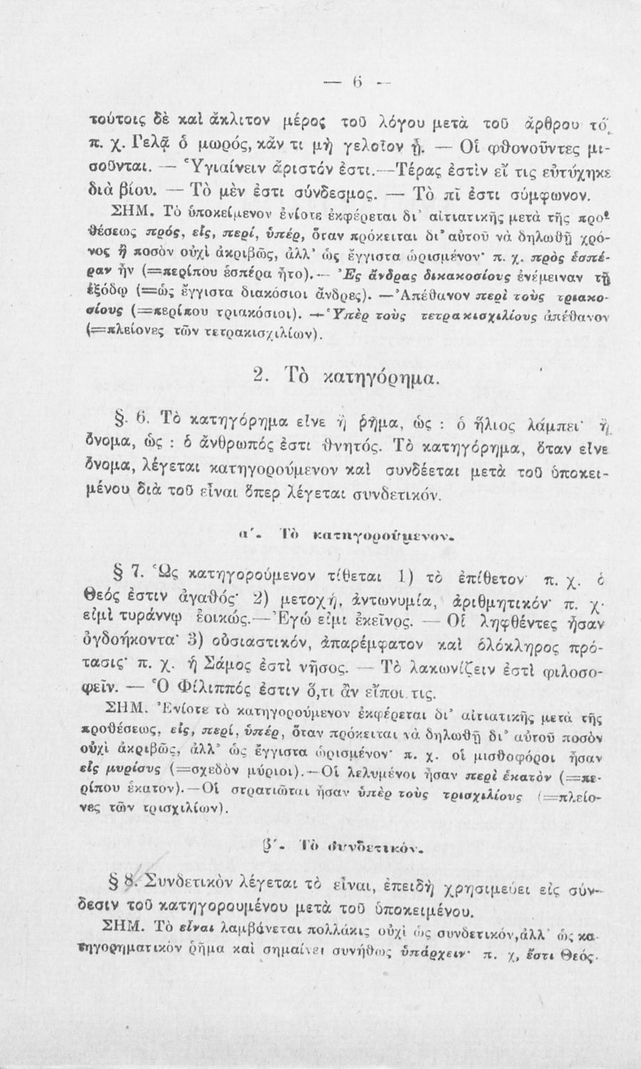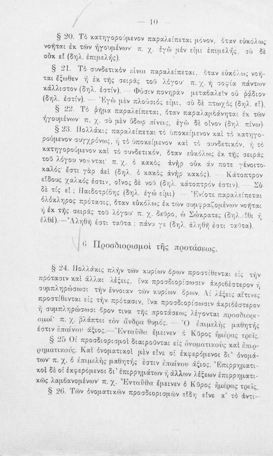 Σχολικό εγχειρίδιο Αρχαίων Ελληνικών για τα Ελληνικά Σχολεία και τα Ανώτερα Παρθεναγωγεία που εξετάζει τα μέρη του λόγου και την σύνταξή τους.