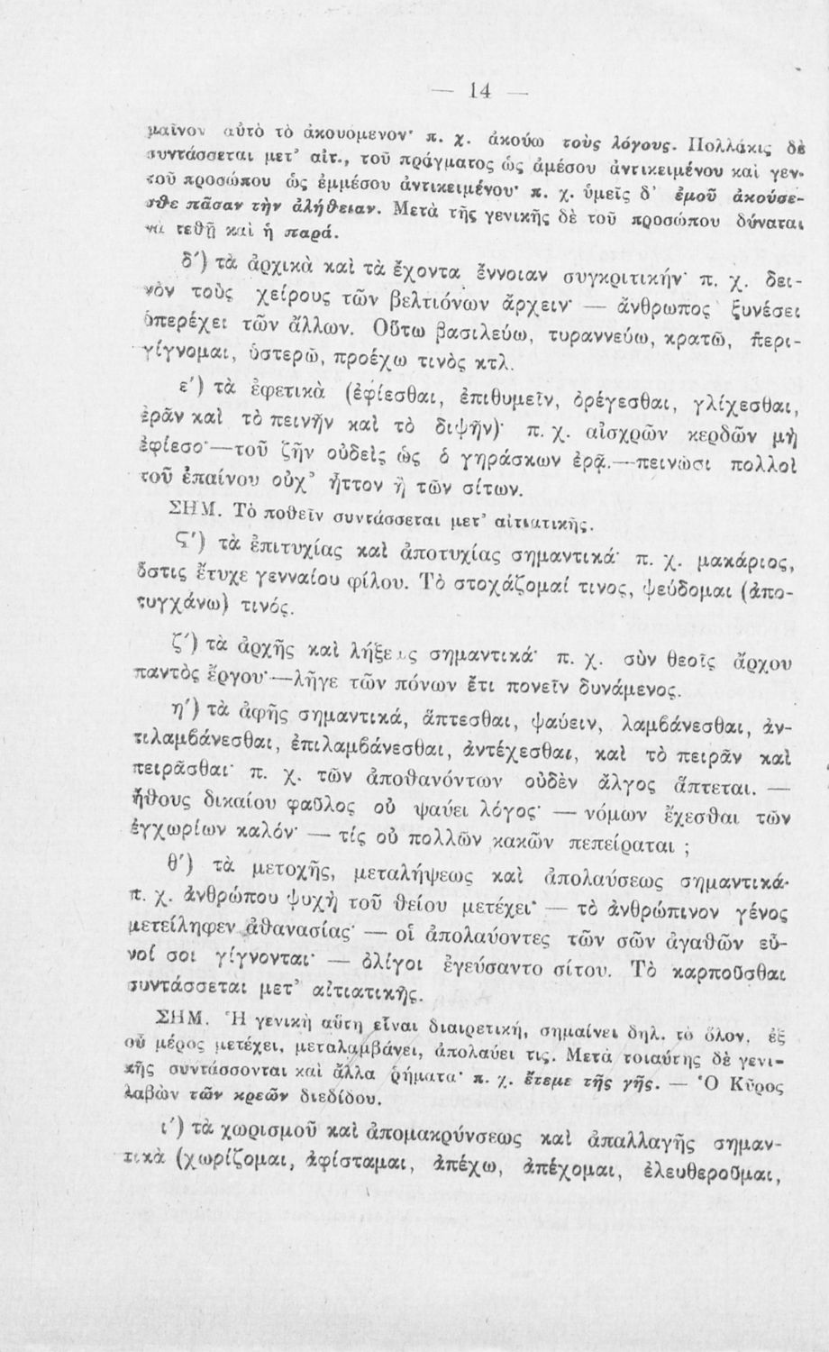 Σχολικό εγχειρίδιο Αρχαίων Ελληνικών που εξετάζει τα μέρη του λόγου και την σύνταξή τους.