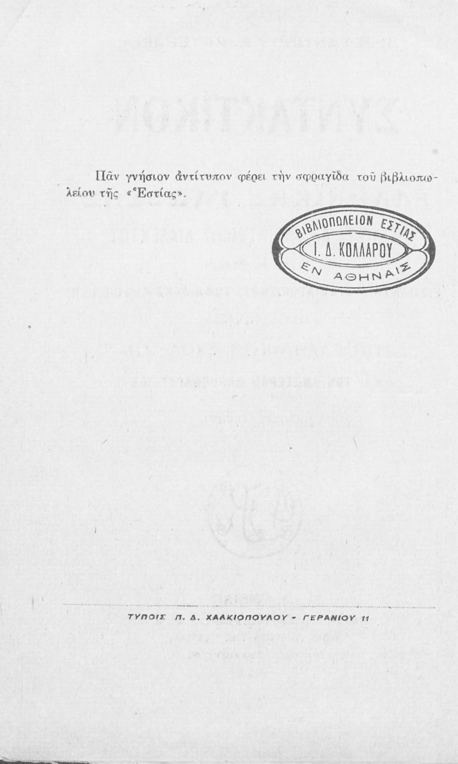 Εκδότης: Ιωάννης Δ. Κολλάρος και ΣΙΑ