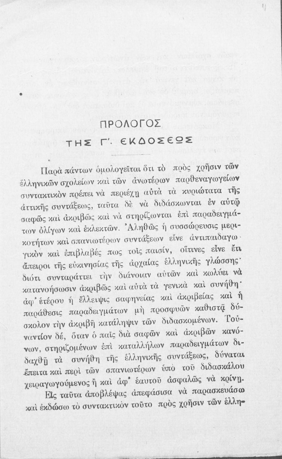 Σχολικό εγχειρίδιο Αρχαίων Ελληνικών για τα Ελληνικά Σχολεία και Παρθεναγωγεία που εστιάζει στα μέρη του λόγου και στην σύνταξή τους.