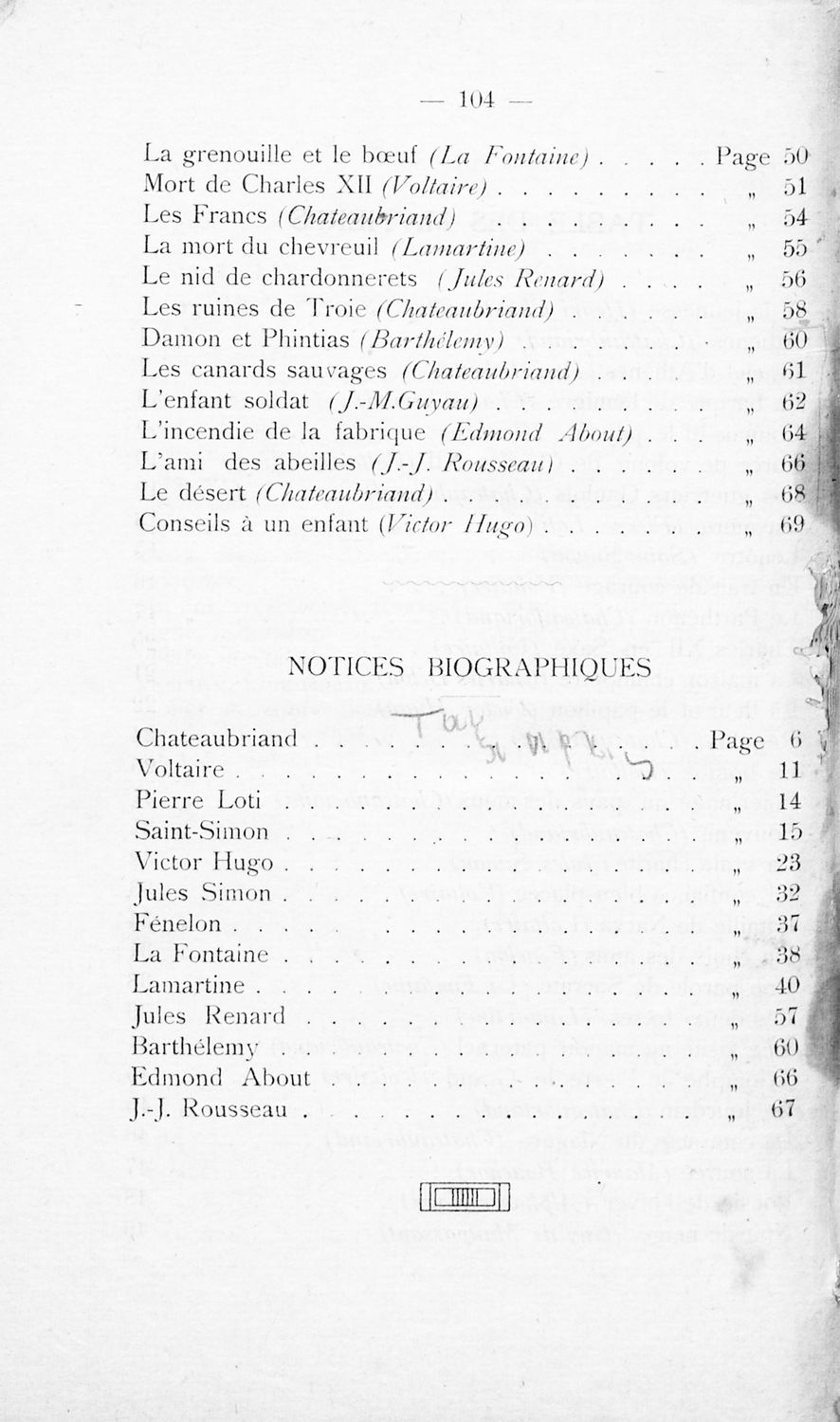 Σχολικό εγχειρίδιο Γαλλικής γλώσσας των τάξεων της Γ΄ Γυμνάσιου, Β΄ Διδασκαλείου Θηλέων και Α' Διδασκαλείου Αρρένων που περιέχει σειρά ποιημάτων και πεζών Γάλλων συγγραφέων, σύντομα βιογραφικά σημειώματα, ...
