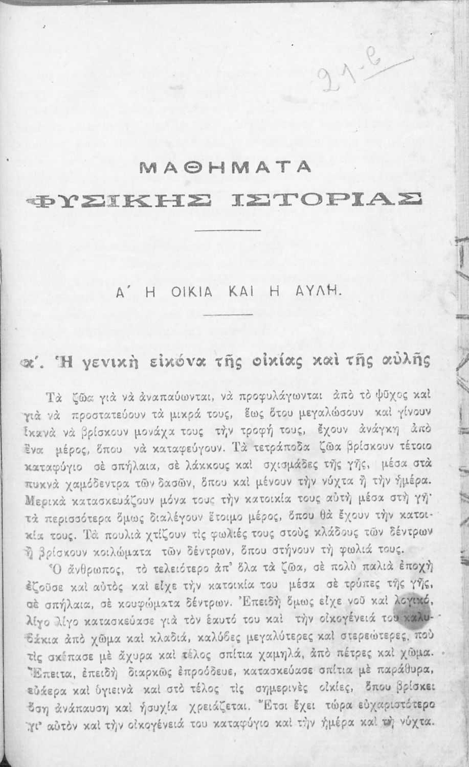 Τάξη:  Α' Γυμνάσιου / Β' Γυμνάσιου / Ανώτερα Παρθεναγωγεία / Α' Διδασκαλείου