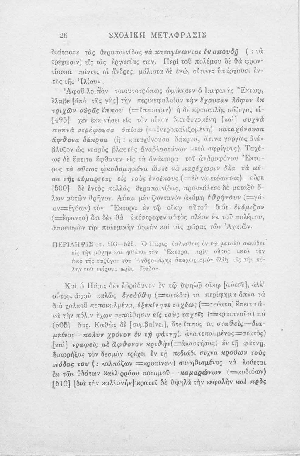 Μαθητικό βοήθημα Αρχαίων Ελληνικών της Δ΄ Γυμνασίου το οποίο περιέχει τις ραψωδίες Ρ΄ και Σ΄ της ΄ Ιλιάδας' σε μετάφραση για ευκολότερη ανάγνωση και κατανόηση από τους μαθητές.