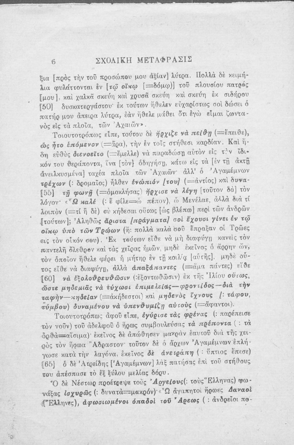 Κωδικός αναγνώρισης: 02-01649 Τίτλος: Σχολική μετάφρασις Ομήρου Ιλιάδος, ραψωδία Ζ΄, προς χρήσιν των μαθητών της τρίτης τάξεως των Τετραταξίων Γυμνασίων και της αντιστοίχου τάξεως των λοιπών σχολείων της Μέσης Εκπαιδεύσεως Συγγραφέας: Ιωάννης Θ. Ρώσσης (μετάφραση) Μέγεθος και υπόστρωμα: Μαθητικό βοήθημα, μαλακό εξώφυλλο, 32 σελίδες. |
