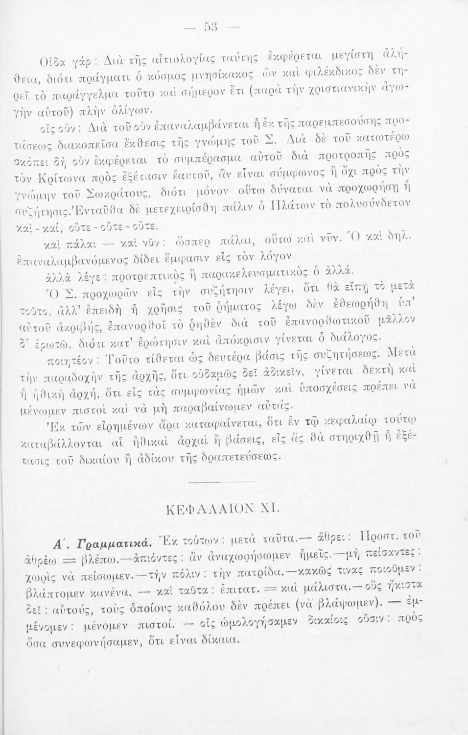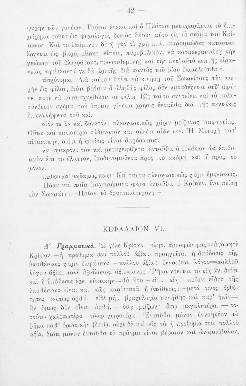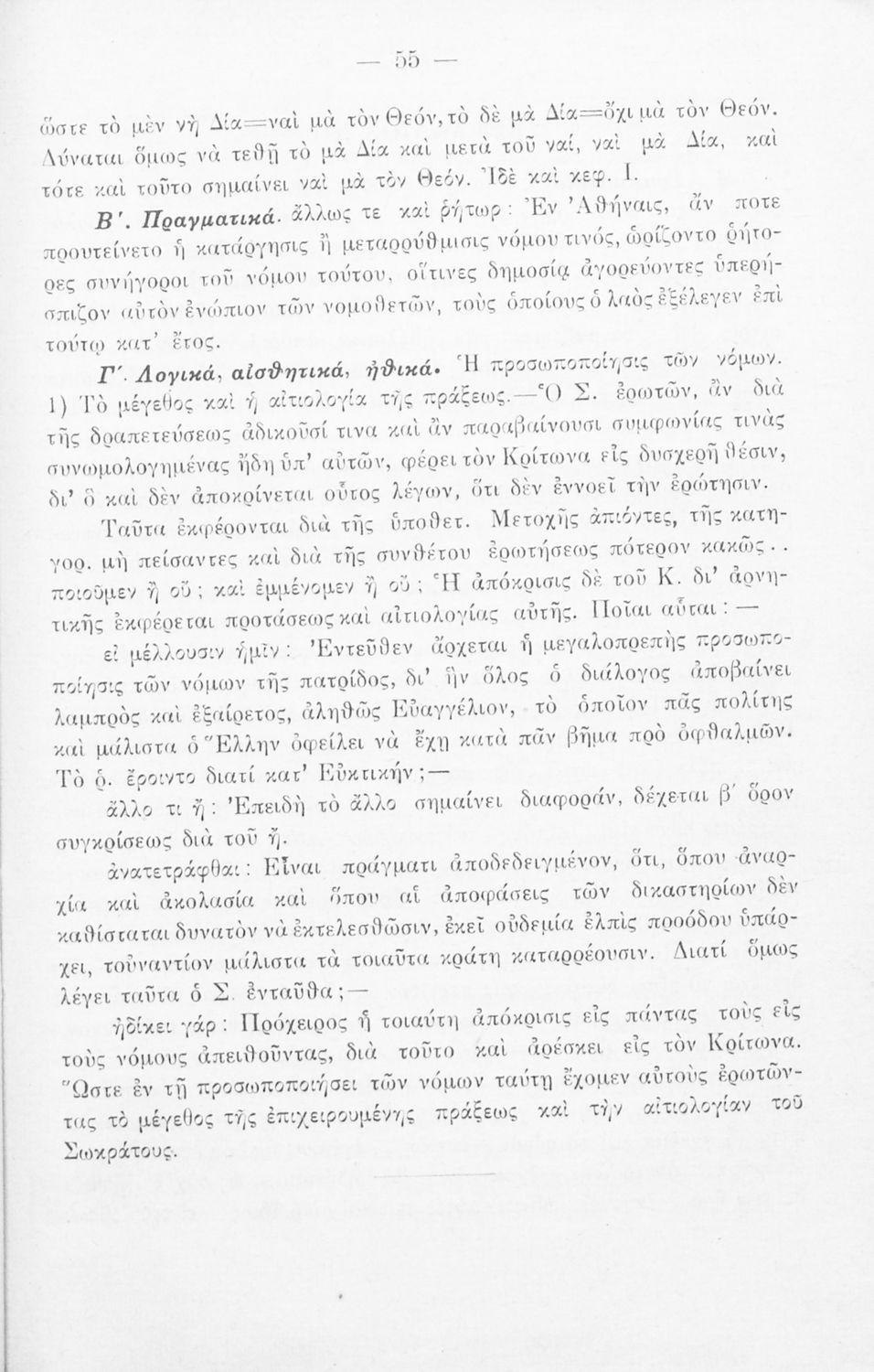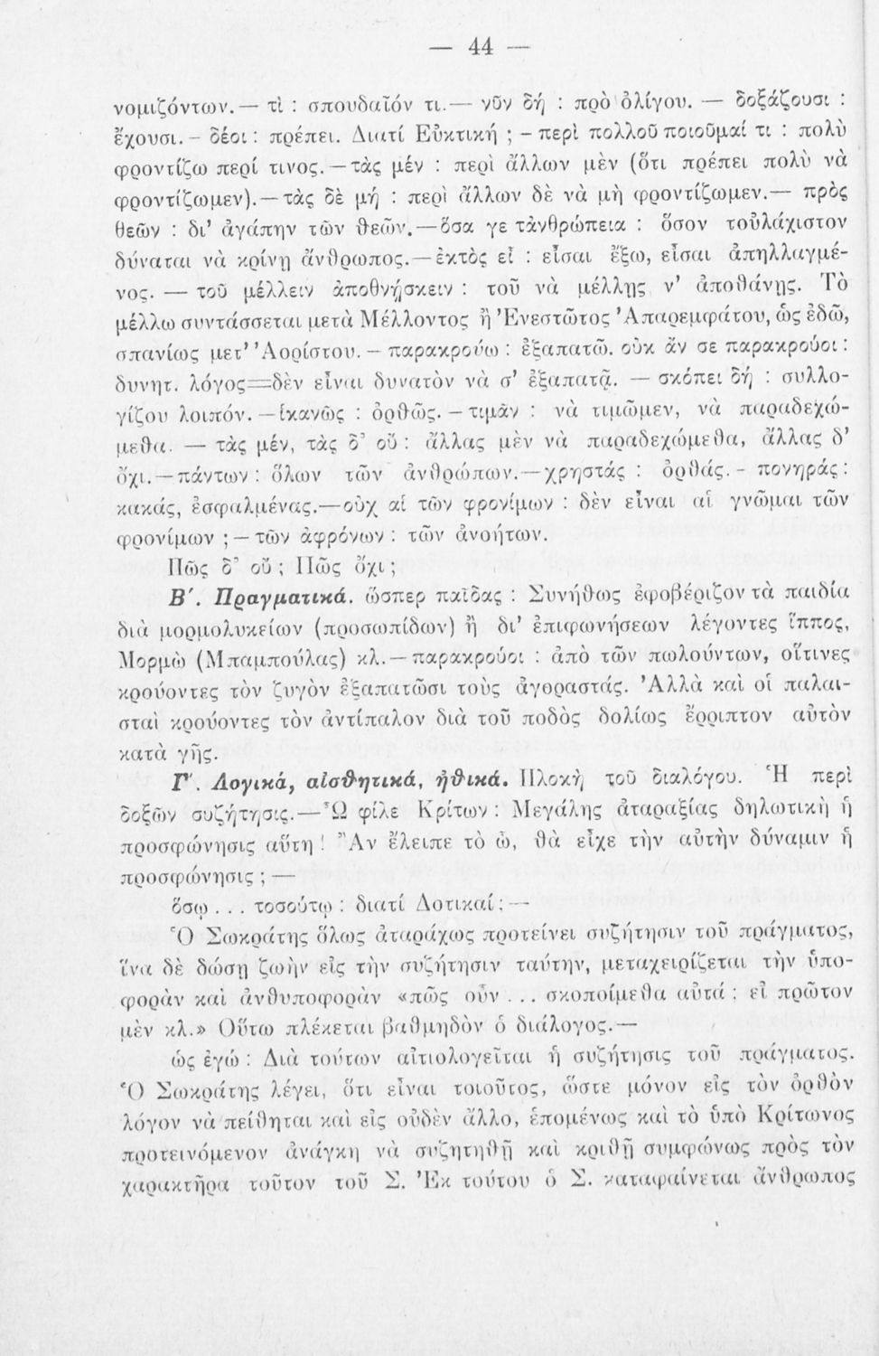 Μαθητικό βοήθημα Αρχαίων Ελληνικών Γ΄ Γυμνασίου που περιέχει σύντομη εισαγωγή στη ζωή και το έργο του Πλάτωνα και του Σωκράτη, κείμενο και ερμηνευτικές και πραγματολογικές σημειώσεις.