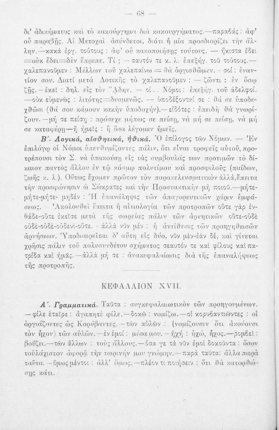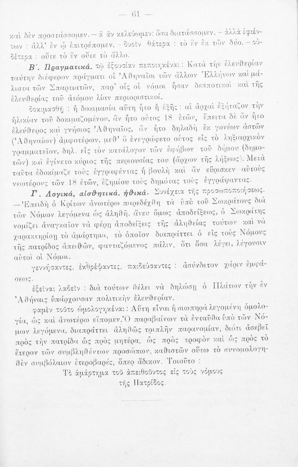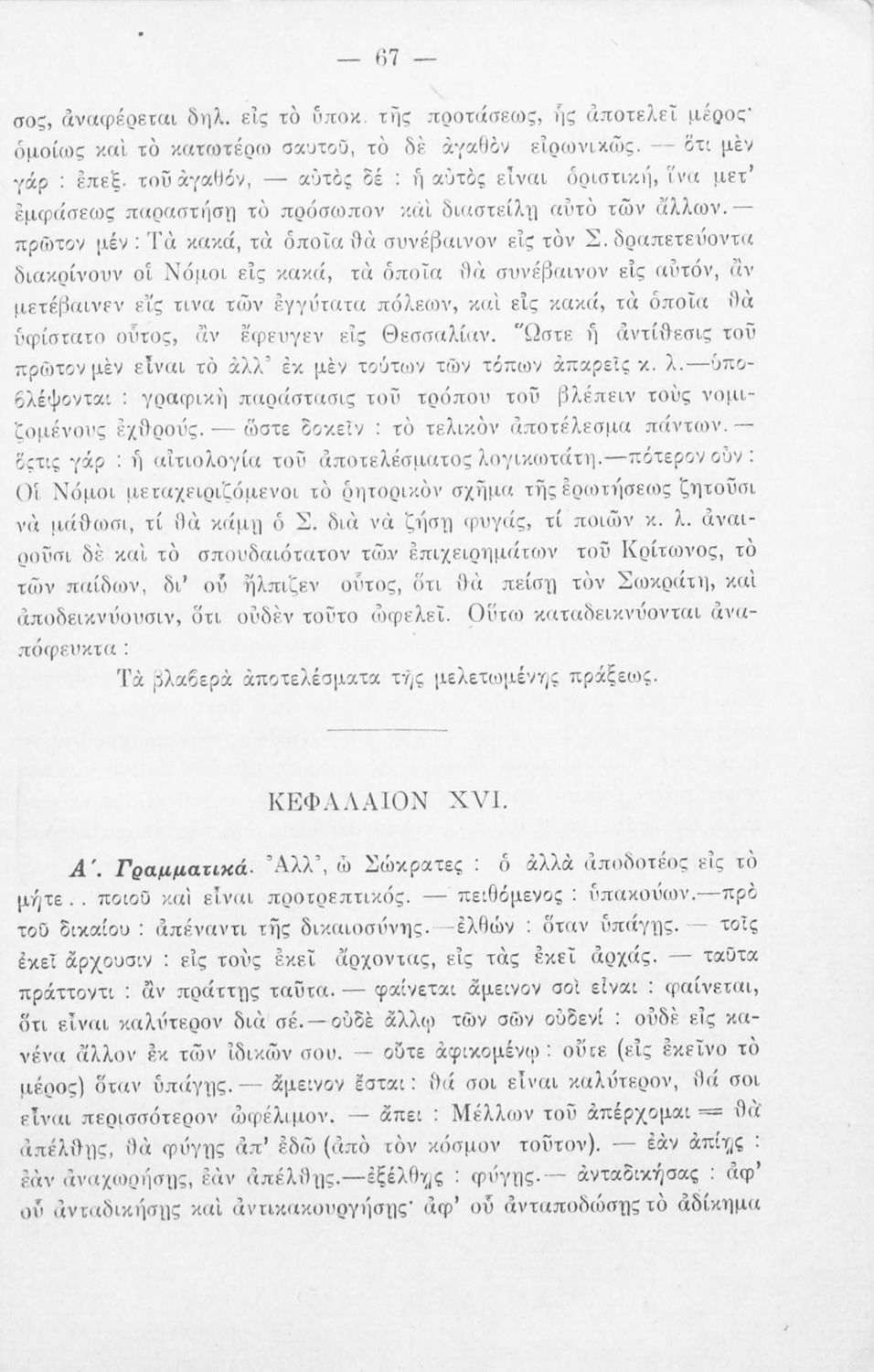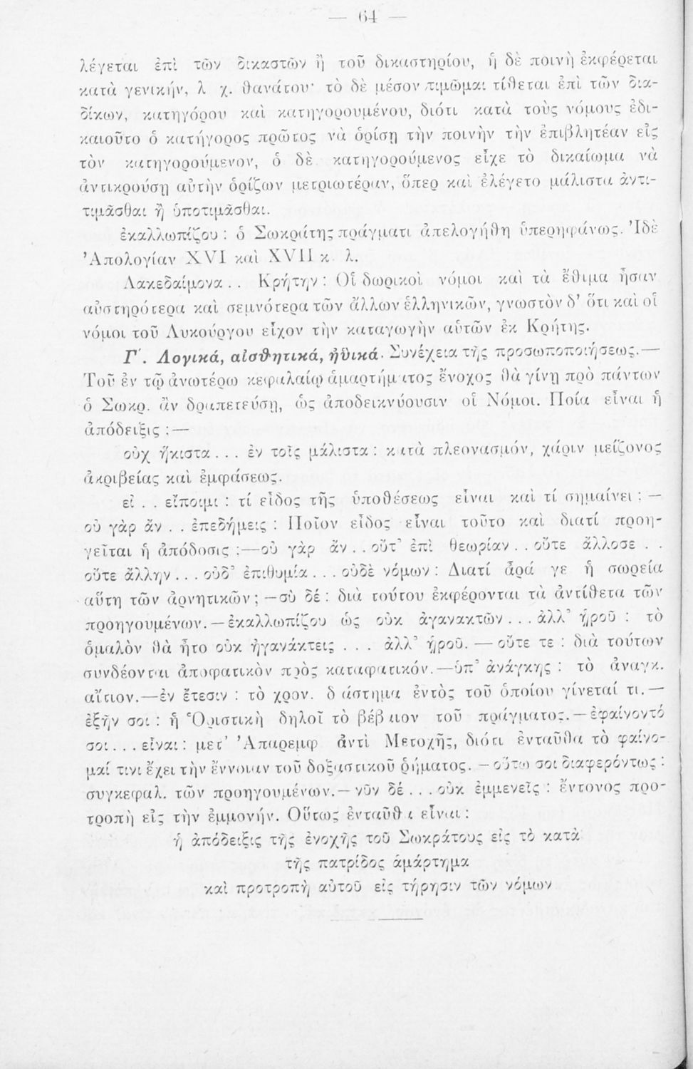 Μαθητικό βοήθημα Αρχαίων Ελληνικών Γ΄ Γυμνασίου που περιέχει σύντομη εισαγωγή στη ζωή και το έργο του Πλάτωνα και του Σωκράτη, κείμενο και ερμηνευτικές και πραγματολογικές σημειώσεις.