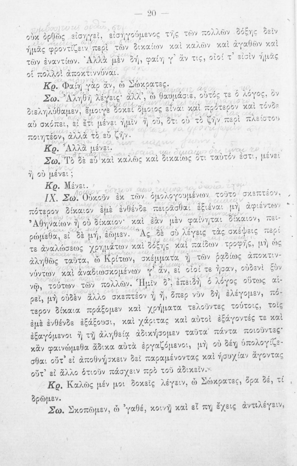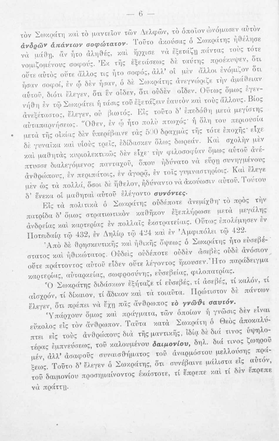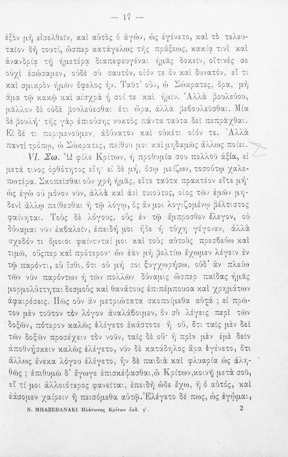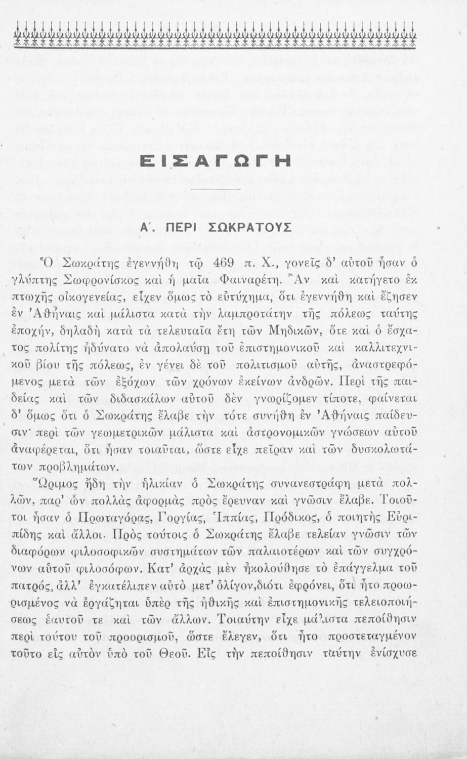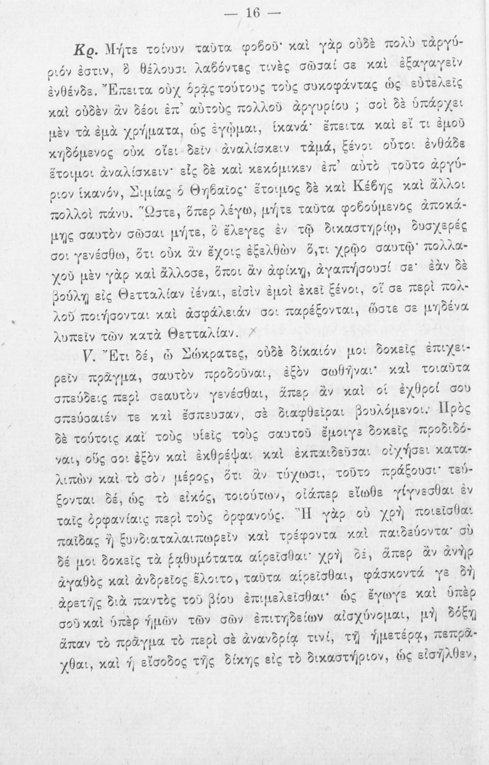 Μαθητικό βοήθημα Αρχαίων Ελληνικών Γ΄ Γυμνασίου που περιέχει σύντομη εισαγωγή στη ζωή και το έργο του Πλάτωνα και του Σωκράτη, κείμενο και ερμηνευτικές και πραγματολογικές σημειώσεις.