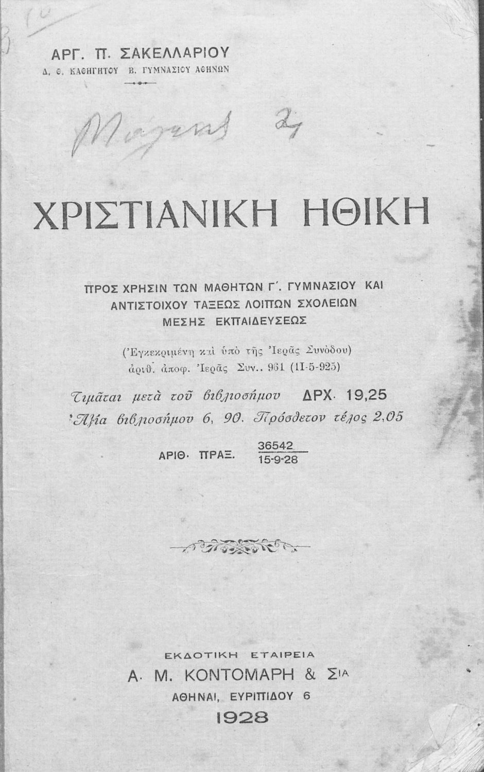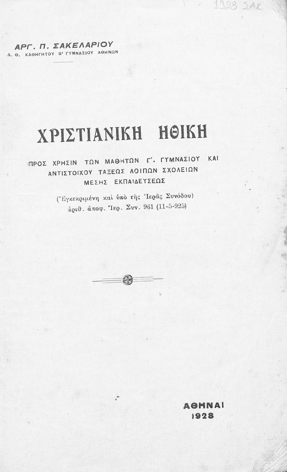 Τίτλος: Χριστιανική ηθική προς χρήσιν των μαθητών Γ΄ Γυμνασίου και αντιστοίχου τάξεως λοιπών σχολείων Μέσης Εκπαιδεύσεως