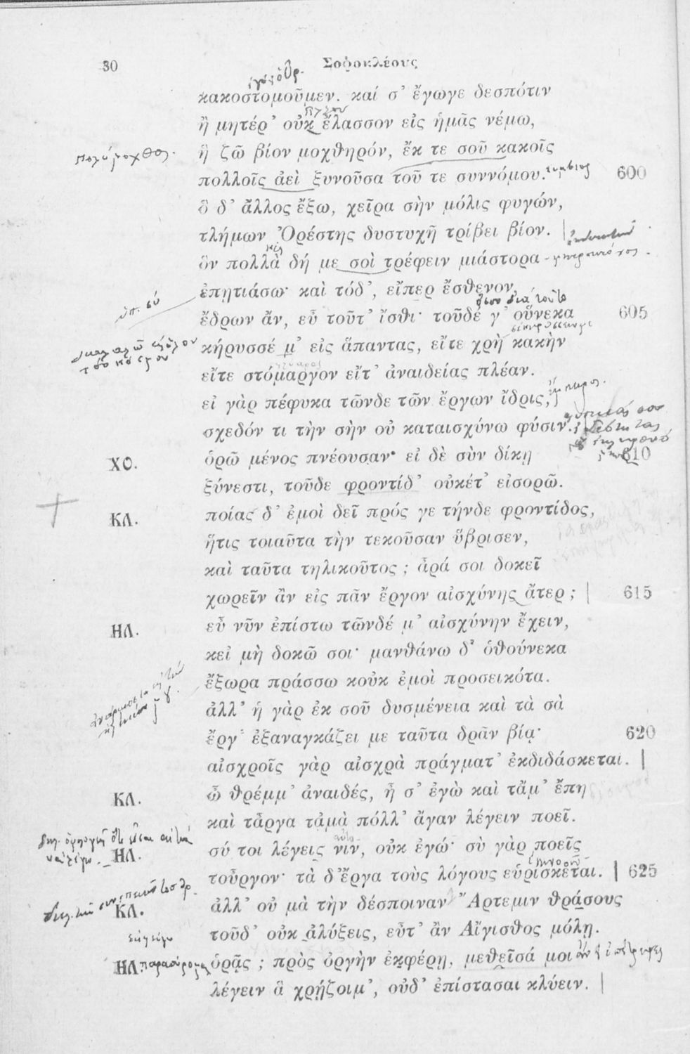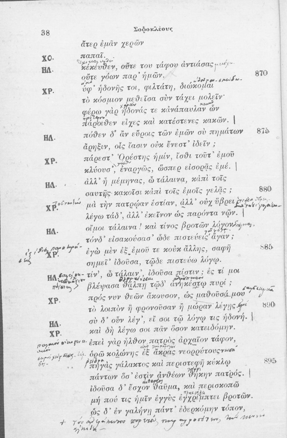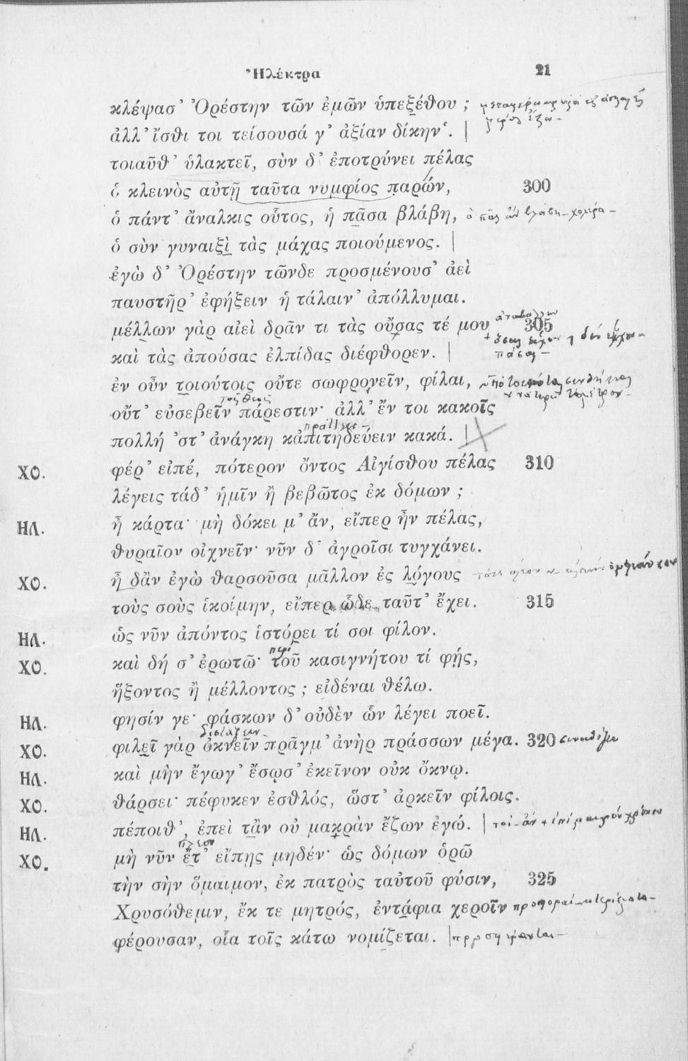Μαθητικό βοήθημα Αρχαίων Ελληνικών που περιλαμβάνει την Ηλέκτρα του Σοφοκλή και γλωσσικές και πραγματικές σημειώσεις.
