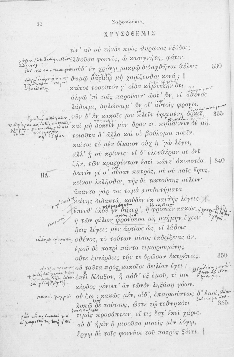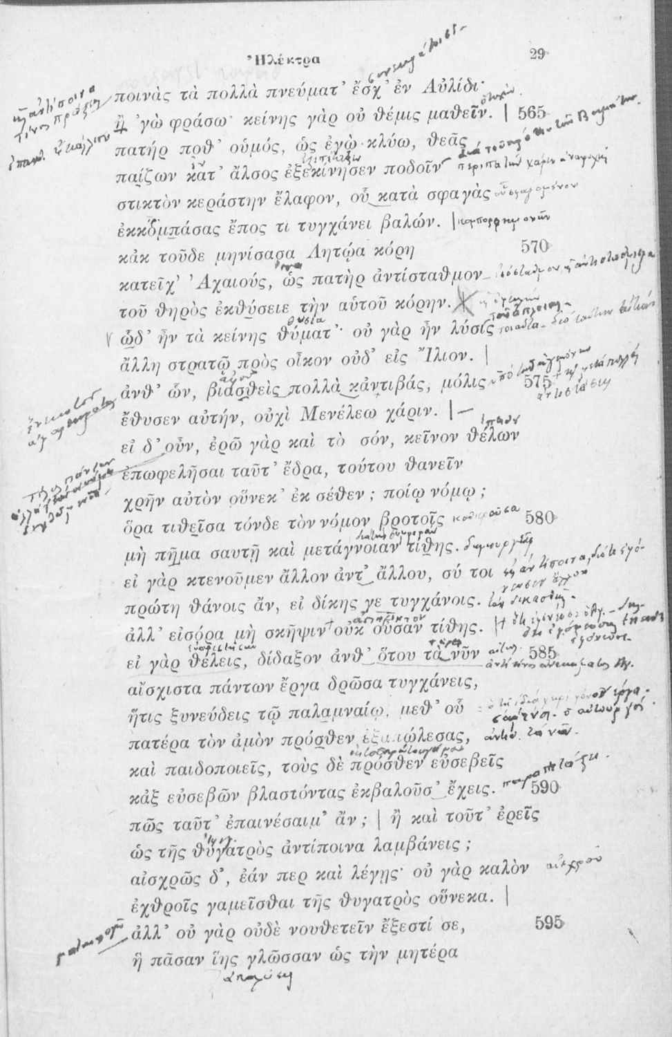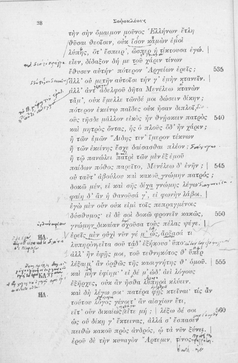 Μαθητικό βοήθημα Αρχαίων Ελληνικών που περιλαμβάνει την Ηλέκτρα του Σοφοκλή και γλωσσικές και πραγματικές σημειώσεις.