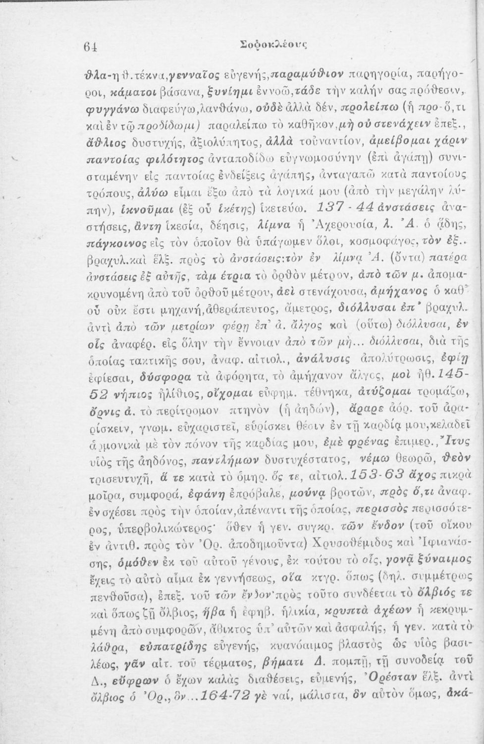 Βαθμίδα εκπαίδευσης: Δευτεροβάθμια Μάθημα: Αρχαία Ελληνικά Γλώσσα: Καθαρεύουσα Παρουσίαση περιεχομένου: Μαθητικό βοήθημα Αρχαίων Ελληνικών το οποίο περιλαμβάνει το έργο του Σοφοκλή, 'Ηλέκτρα'. Το βιβλίο ξεκινάει με μια εισαγωγή για τη γέννηση και την εξέλιξη της τραγωδίας, συνεχίζει παραθέτοντας το έργο το οποίο και συνοδεύεται από γλωσσικές και ερμηνευτικές παρατηρήσεις. |