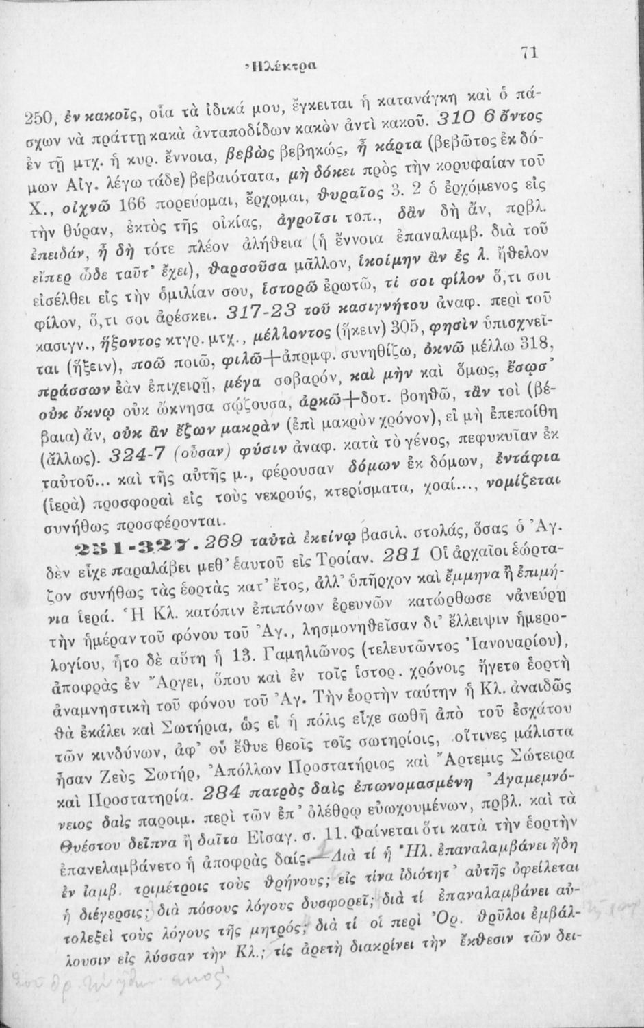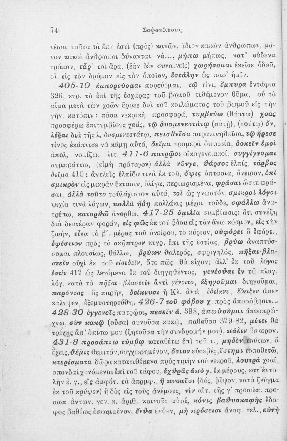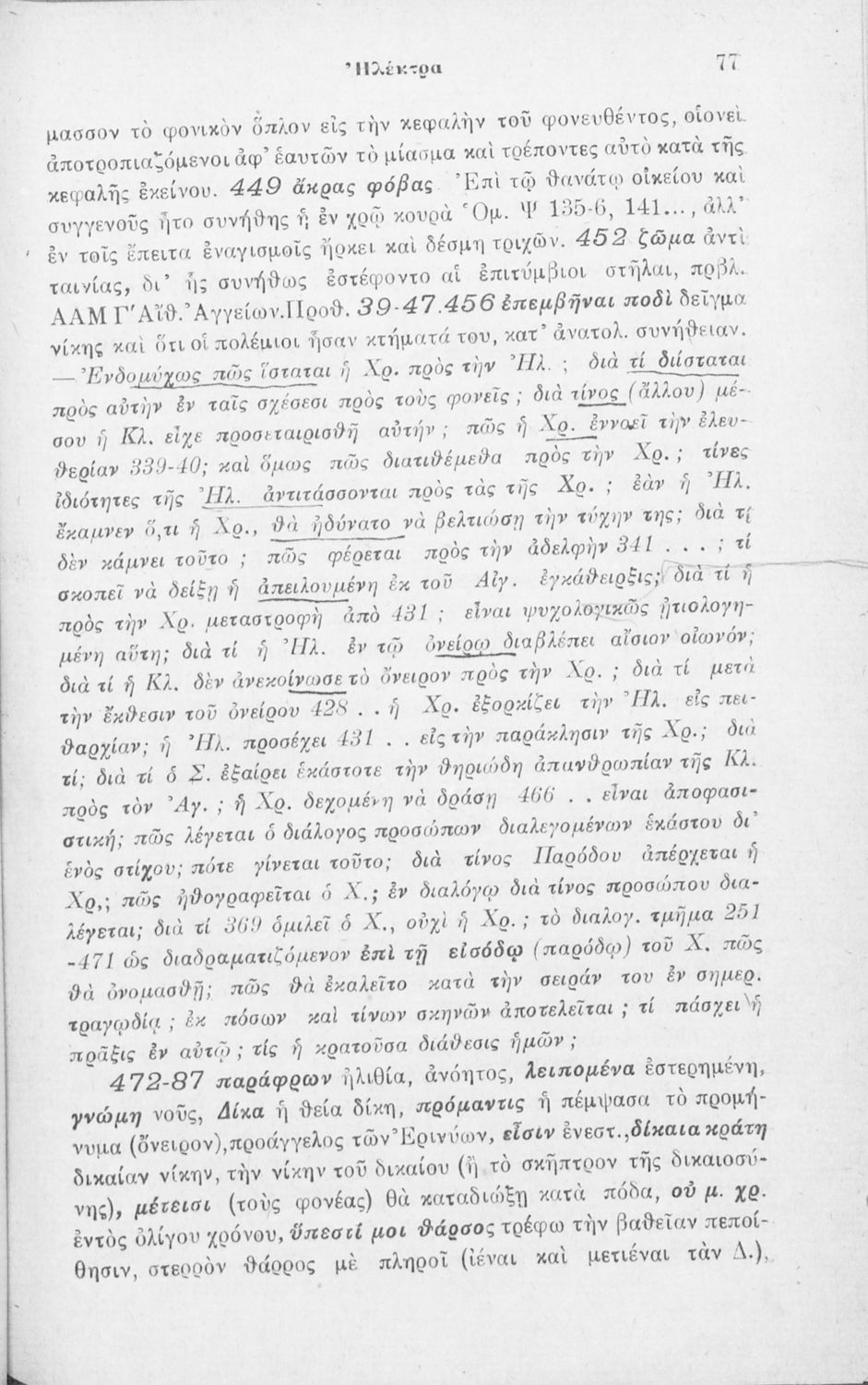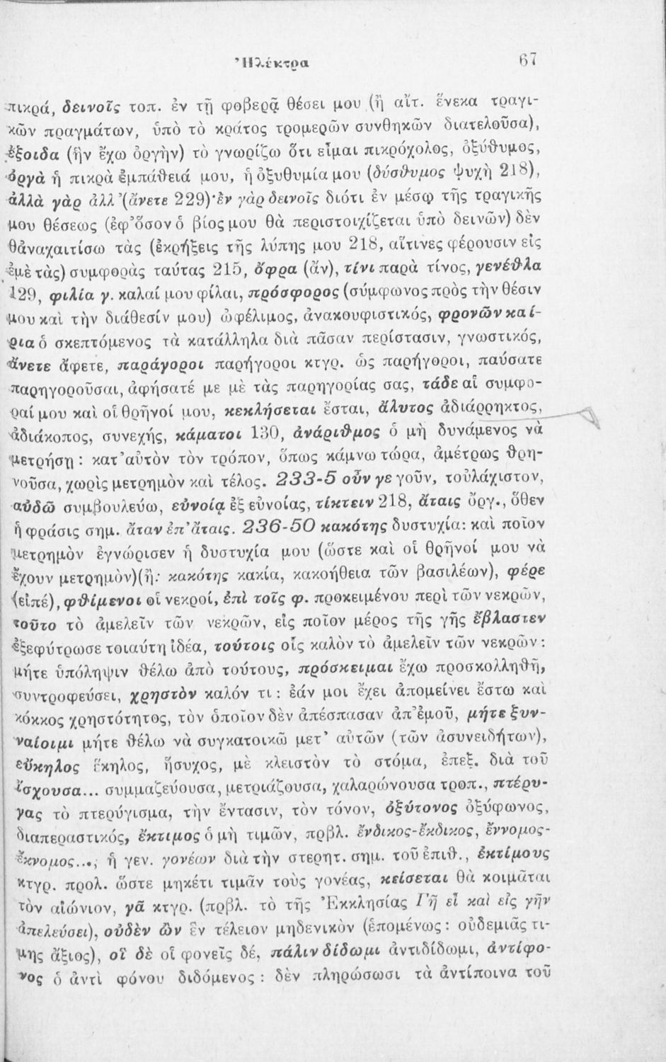 Μαθητικό βοήθημα Αρχαίων Ελληνικών το οποίο περιλαμβάνει το έργο του Σοφοκλή, 'Ηλέκτρα'. Το βιβλίο ξεκινάει με μια εισαγωγή για τη γέννηση και την εξέλιξη της τραγωδίας, συνεχίζει παραθέτοντας το έργο το οποίο και συνοδεύεται από γλωσσικές και ερμηνευτικές παρατηρήσεις.