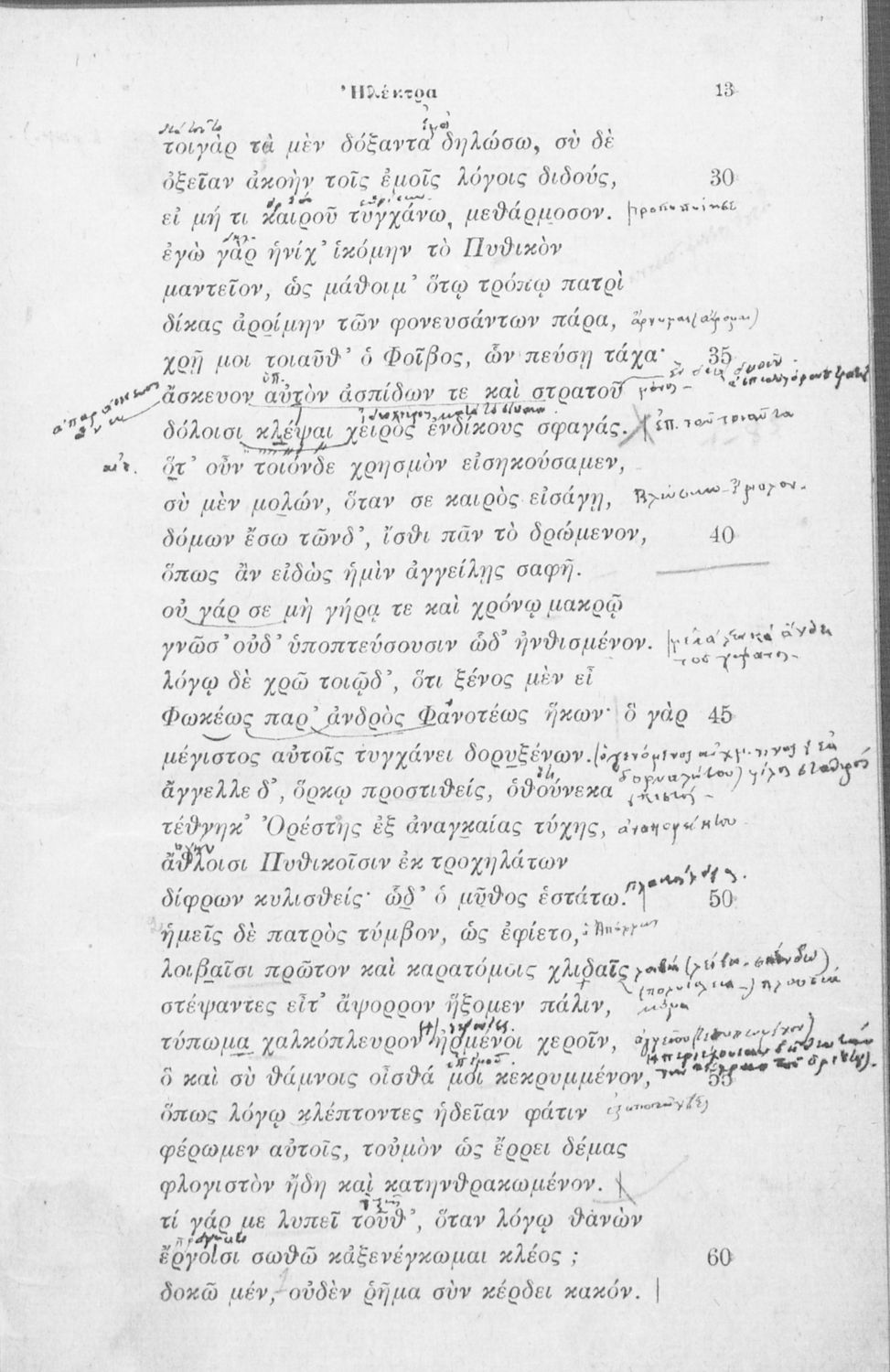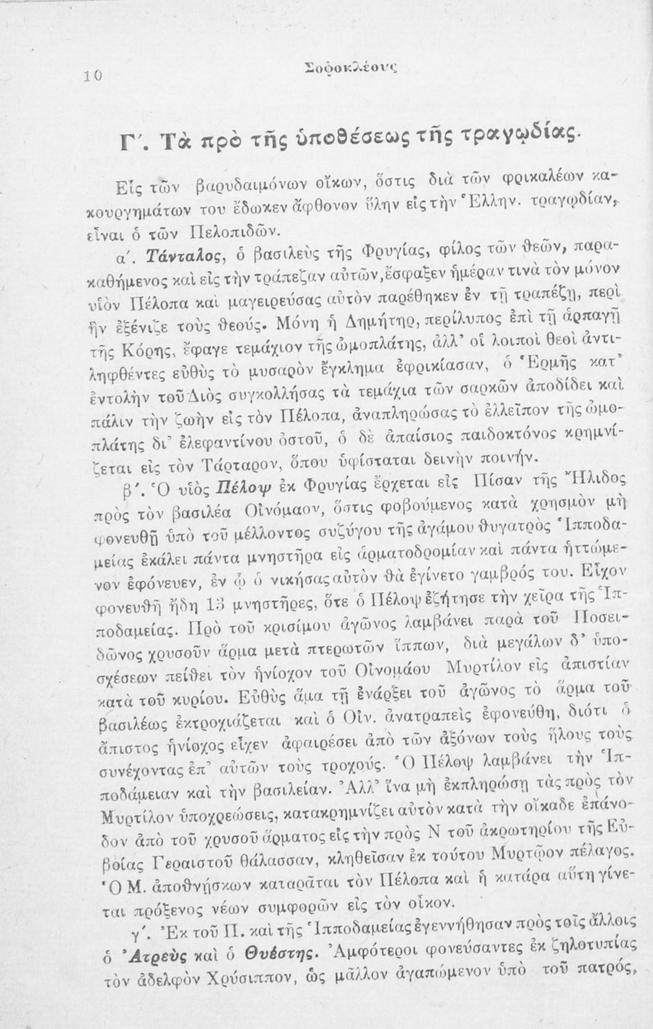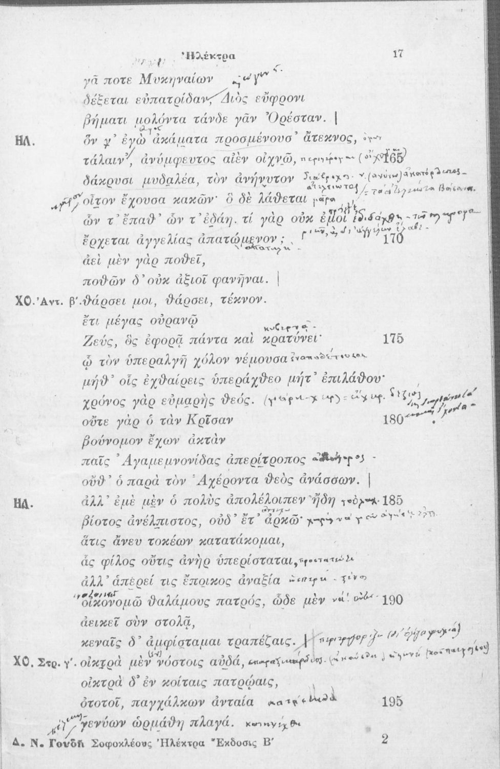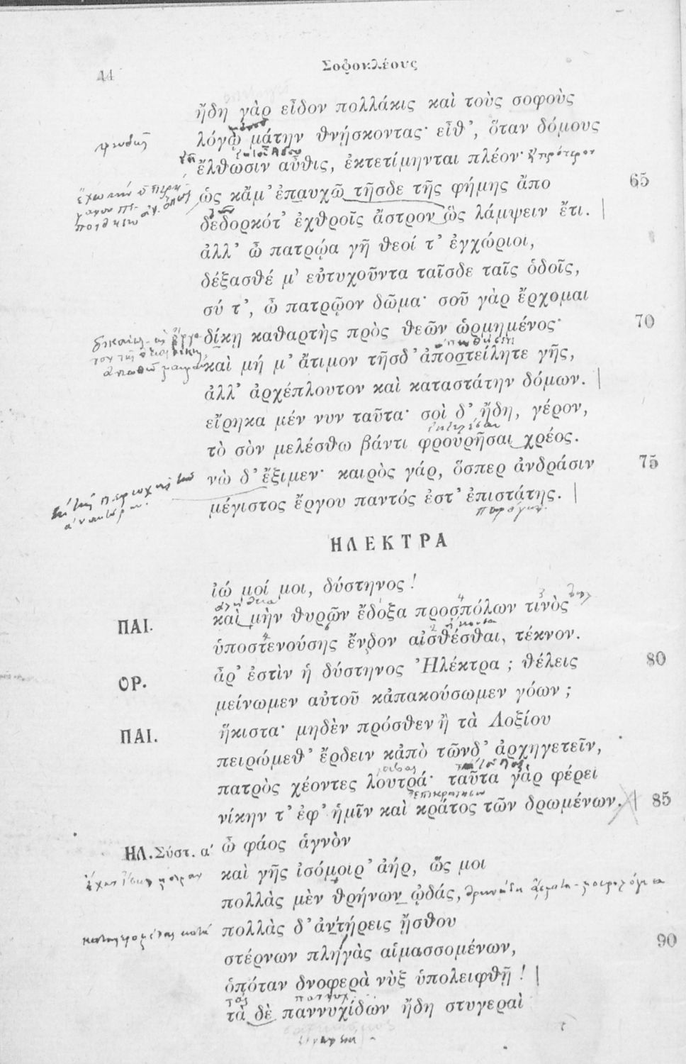 Μαθητικό βοήθημα Αρχαίων Ελληνικών το οποίο περιλαμβάνει το έργο του Σοφοκλή, 'Ηλέκτρα'. Το βιβλίο ξεκινάει με μια εισαγωγή για τη γέννηση και την εξέλιξη της τραγωδίας, συνεχίζει παραθέτοντας το έργο το οποίο και συνοδεύεται από γλωσσικές και ερμηνευτικές παρατηρήσεις.