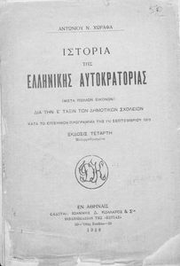 Κωδικός αναγνώρισης: 02-01668 Τίτλος: Ιστορία της Ελληνικής Αυτοκρατορίας δια την Ε΄ τάξιν των Δημοτικών Σχολείων Συγγραφέας: Αντώνιος Χωραφάς Μέγεθος και υπόστρωμα: Σχολικό εγχειρίδιο, μαλακό εξώφυλλο, 82 σελίδες. Εικόνες (ασπρόμαυρες), σκίτσα (ασπρόμαυρα), χάρτες (ασπρόμαυροι). |