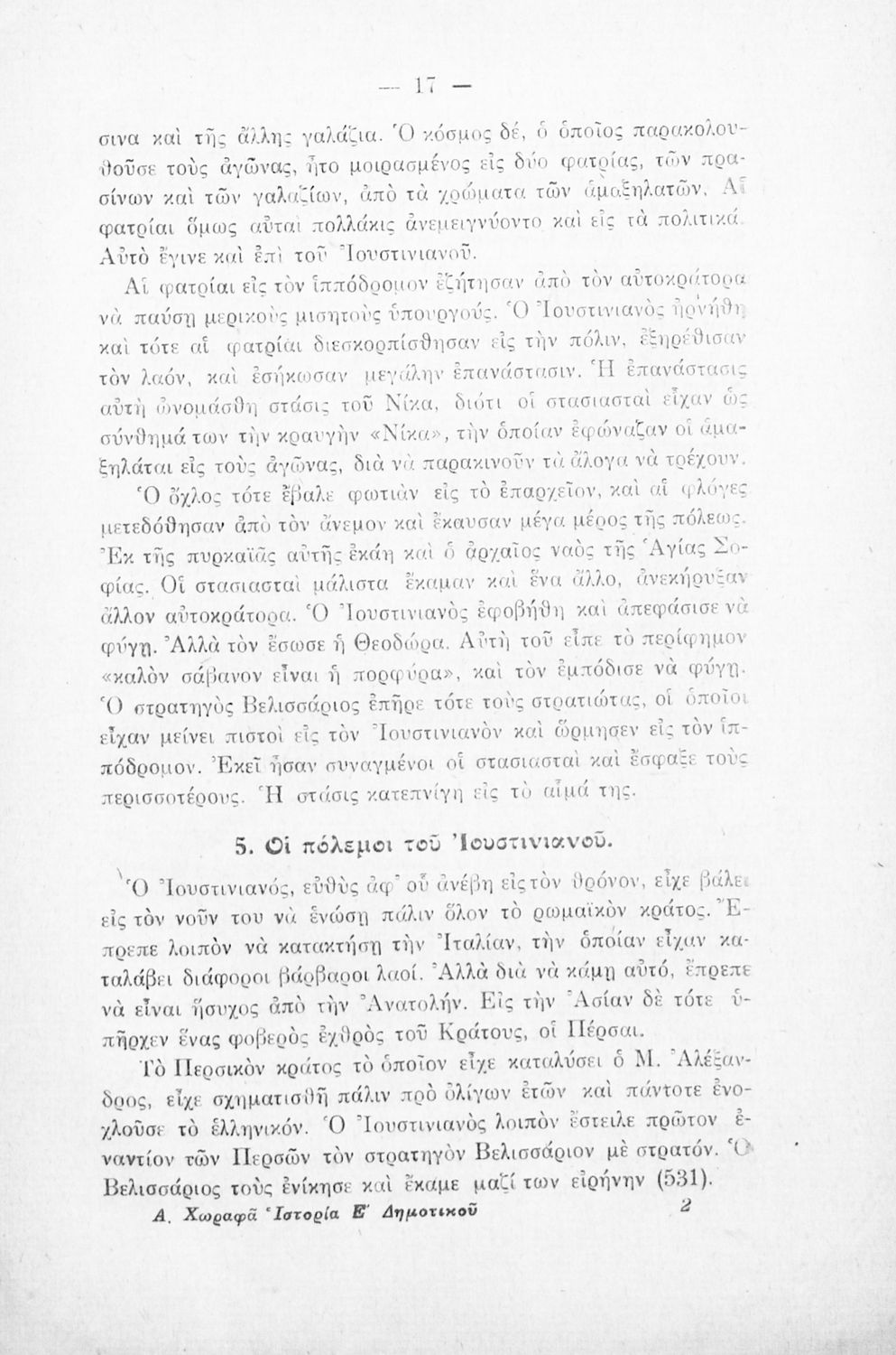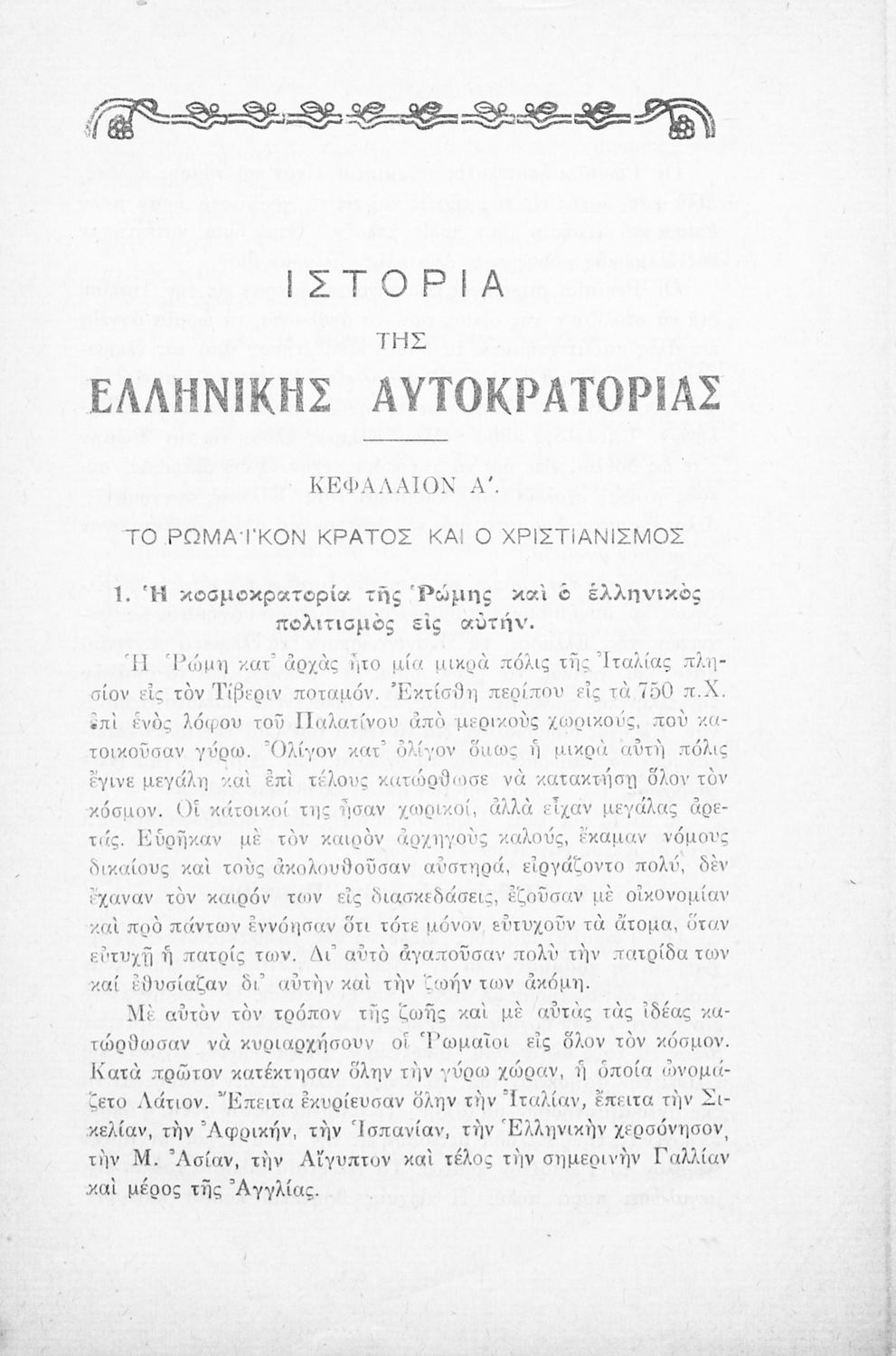 Βαθμίδα εκπαίδευσης: Πρωτοβάθμια Τάξη: Ε' Δημοτικού Μάθημα: Ιστορία Γλώσσα: Καθαρεύουσα Παρουσίαση περιεχομένου: Σχολικό εγχειρίδιο Ιστορίας Ε΄ Δημοτικού που καλύπτει την περίοδο από την ίδρυση της Ρώμης μέχρι την άλωση της Κωνσταντινούπολης και την Αναγέννηση στην Ευρώπη. |