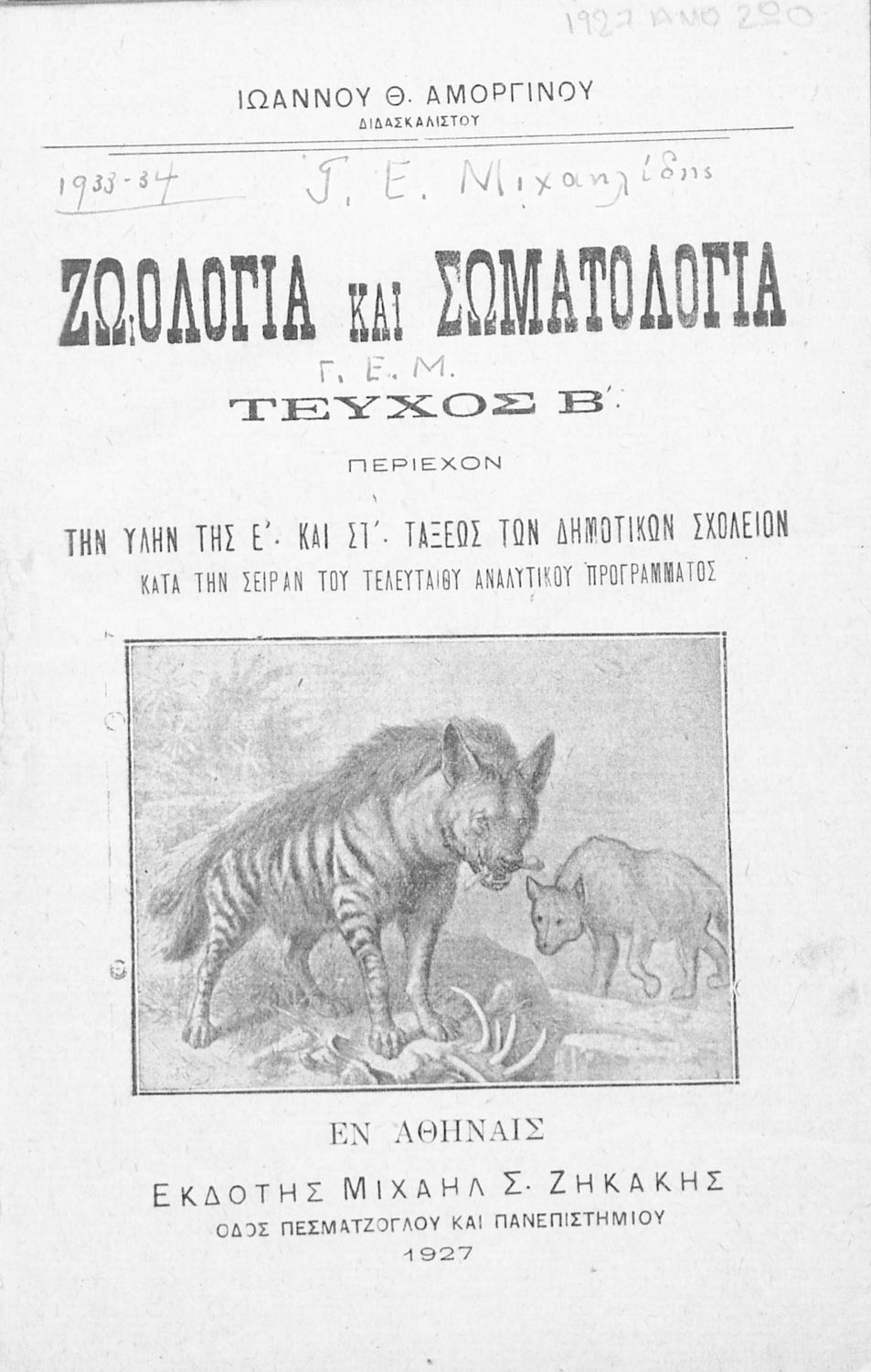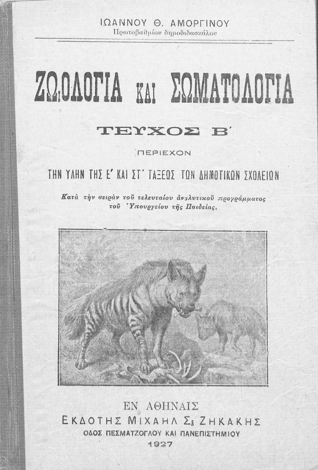 Μαθητικό βοήθημα Ζωολογίας και Σωματολογίας για τις Ε΄ και ΣΤ΄ Δημοτικού χωρισμένο σε τρία μέρη: την ταξινόμηση των ζώων ανάλογα με το περιβάλλον στο οποίο διαβιούν, το ζωικό βασίλειο και την ανθρώπινη φυσιολογία και ανατομία.