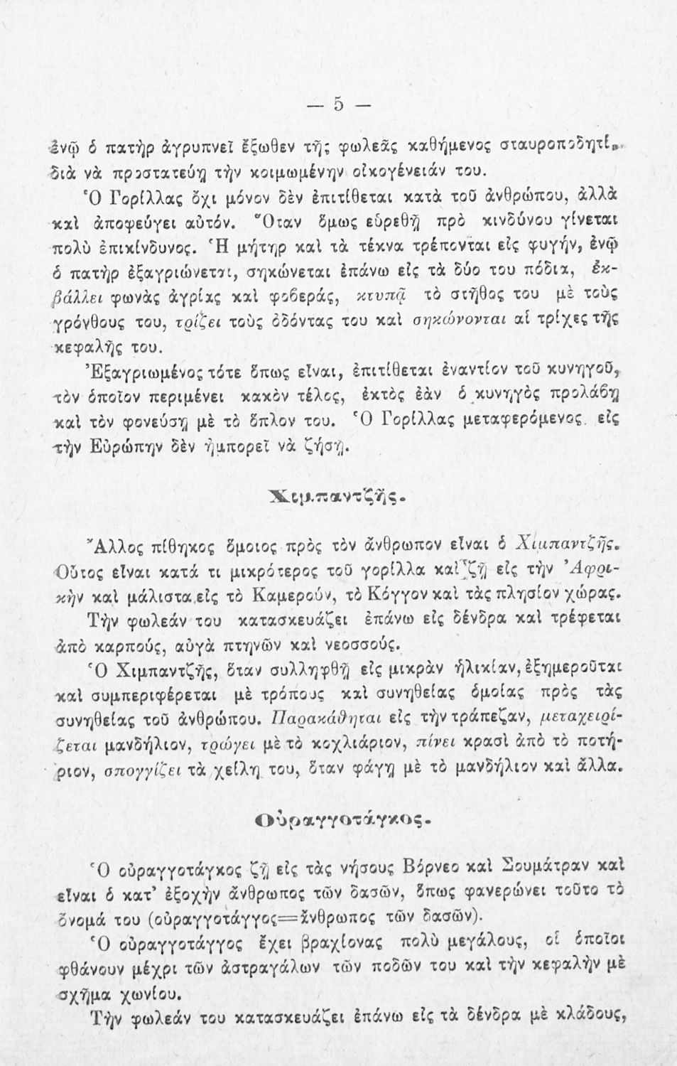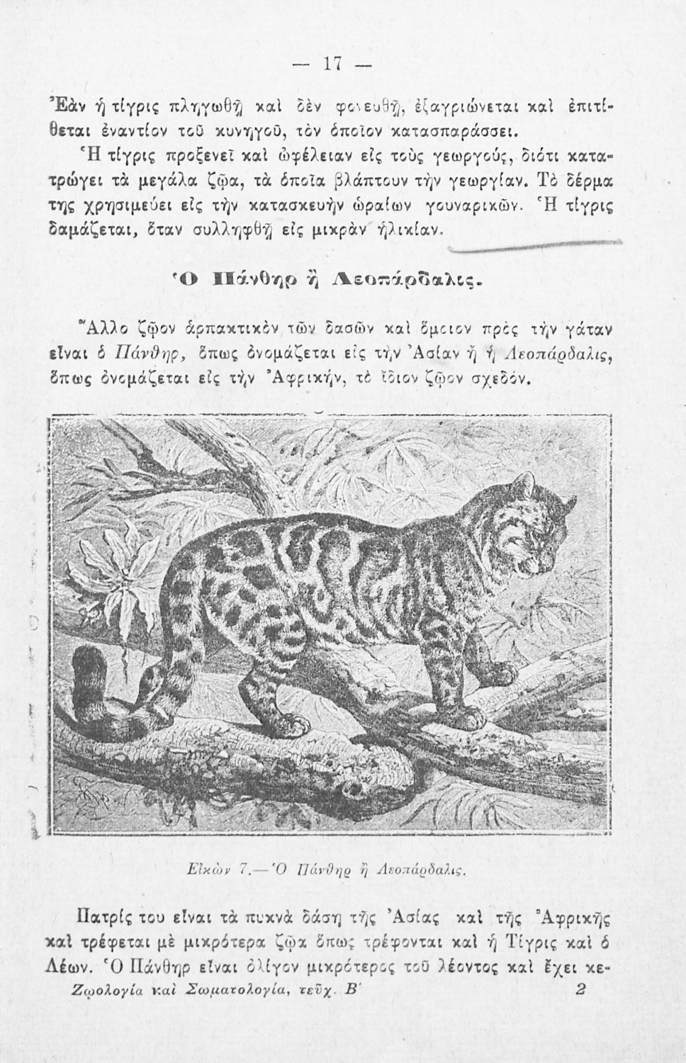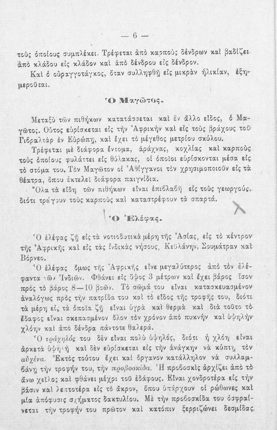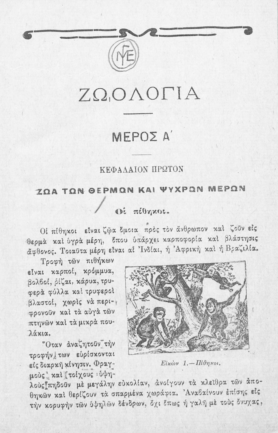 Βαθμίδα εκπαίδευσης: Πρωτοβάθμια Τάξη: Ε' Δημοτικού / ΣΤ' Δημοτικού Μάθημα: Ζωολογία Γλώσσα: Καθαρεύουσα Παρουσίαση περιεχομένου: Μαθητικό βοήθημα Ζωολογίας και Σωματολογίας για τις Ε΄ και ΣΤ΄ Δημοτικού χωρισμένο σε τρία μέρη: την ταξινόμηση των ζώων ανάλογα με το περιβάλλον στο οποίο διαβιούν, το ζωικό βασίλειο και την ανθρώπινη φυσιολογία και ανατομία. |