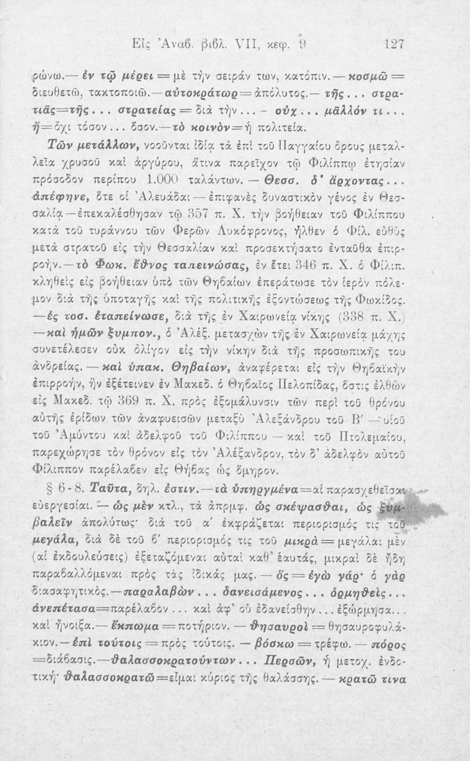 Σχολικό εγχειρίδιο Αρχαίων Ελληνικών για τις Γ΄ Ελληνικού Σχολείου και Α΄ Αστικού Σχολείου Θηλέων που περιλαμβάνει το έργο του Ξενοφώντα Κύρου Ανάβασις, ερμηνευτικά και πραγματολογικά σχόλια και λεξιλογικές ...