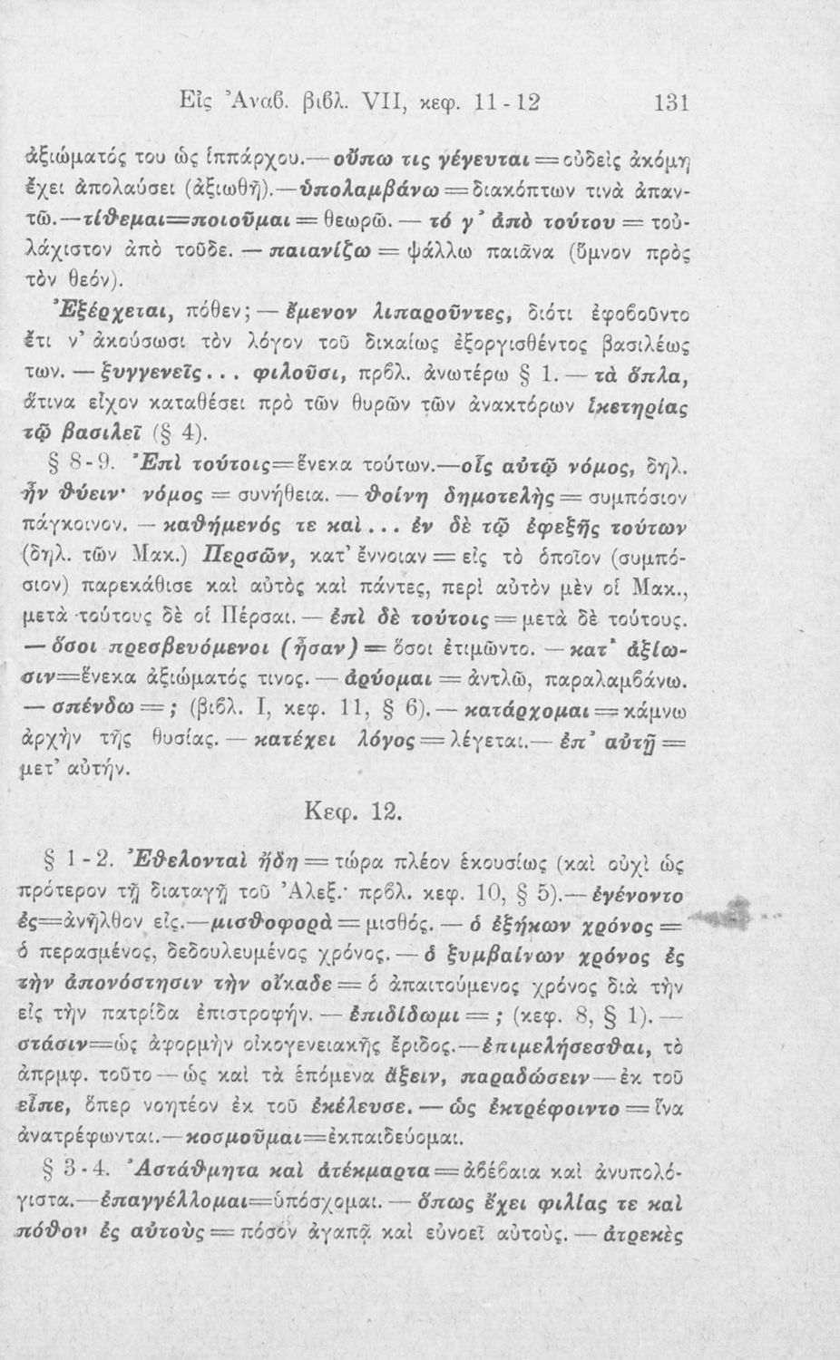 Σχολικό εγχειρίδιο της Γ' Ελληνικού Σχολείου και Αστικών Σχολείων για το μάθημα των Αρχαίων Ελληνικών. Το σύγγραμμα περιλαμβάνει κείμενα κατ΄ επιλογή από τα τέσσερα τελευταία βιβλία του έργου Κύρου Ανάβασις. ...