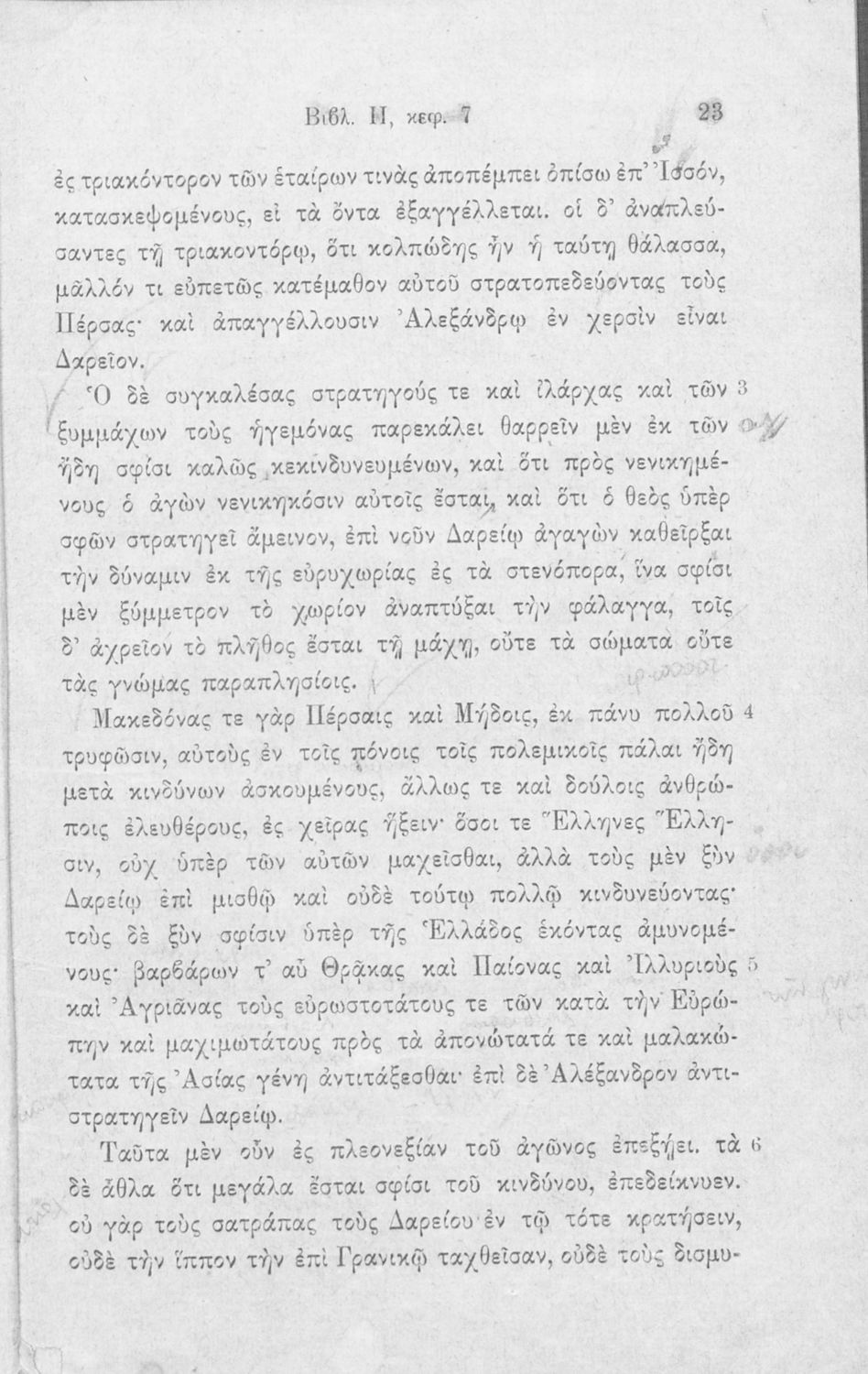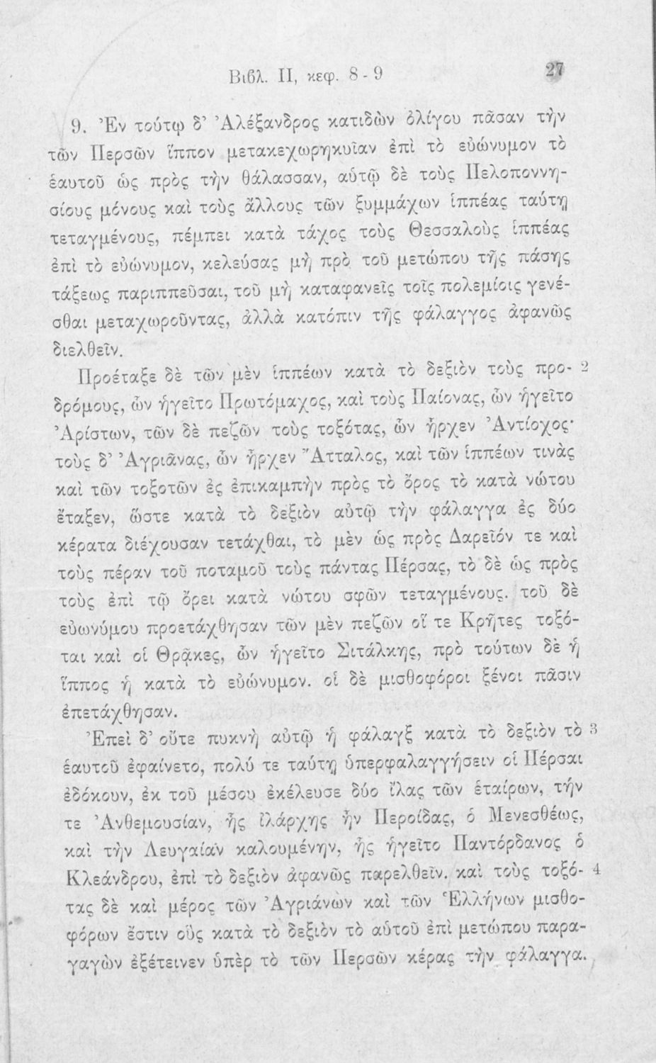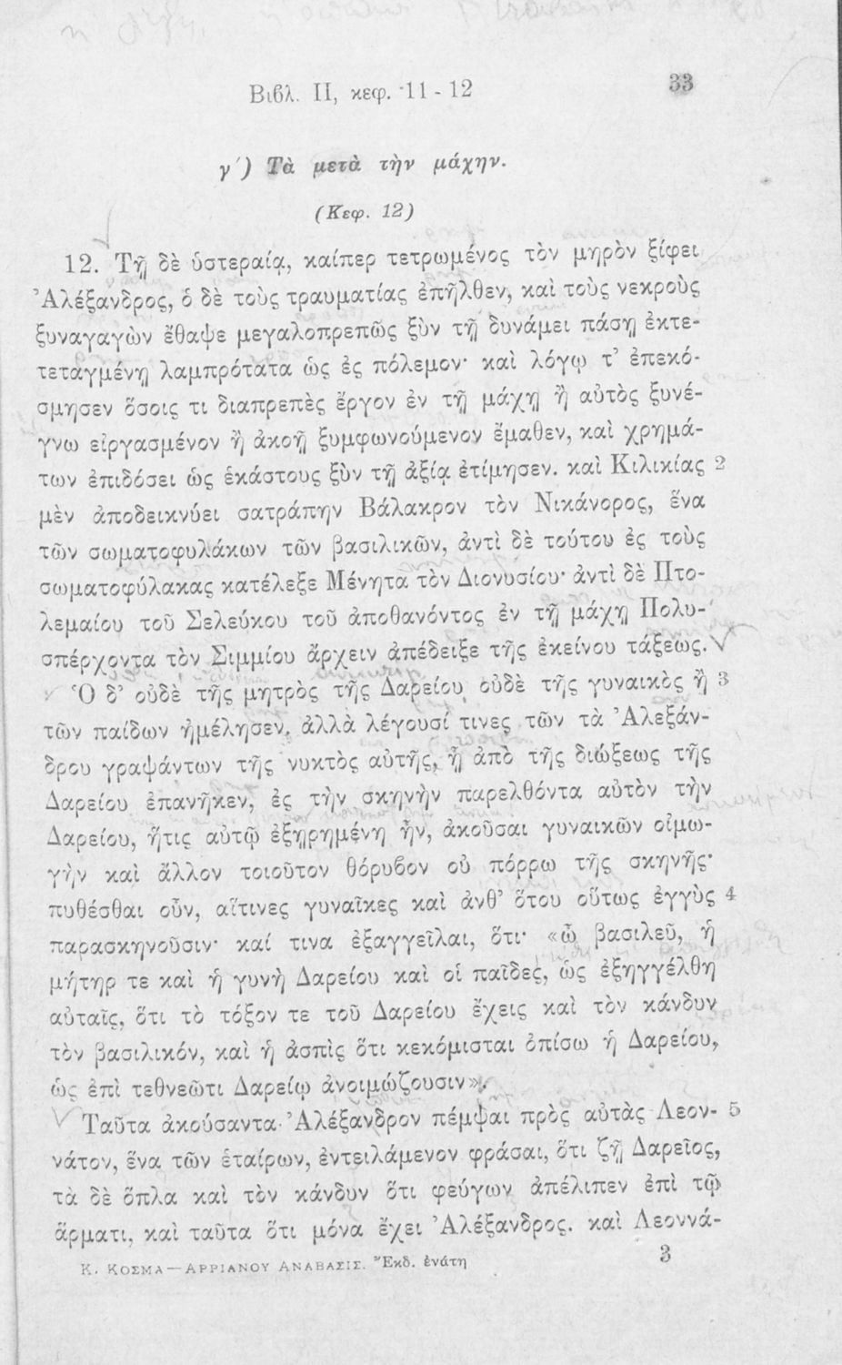 LDR 01353 2200205 4500 035 ## _a02-01673 040 ## _aΕλληνικό Λογοτεχνικό και Ιστορικό Αρχείο 041 ## _ael 100 ## _aΑρριανός (Lucius Flavius Arrianus) _aΚυριάκος Κοσμάς (σχόλια) 110 ## _a1927 ΑΡΡ 245 0# _aΑρριανού Ανάβασις Αλεξάνδρου, κατ΄ εκλογήν εκδοθείσα, δια την Α΄ τάξιν των Γυμνασίων 250 ## _a9η Έκδοση 260 ## _aΑθήνα _bΙωάννης Δ. Κολλάρος και ΣΙΑ _c1927 300 ## _a150 _bΕικόνες (ασπρόμαυρες), Σκίτσα (ασπρόμαυρα), Χάρτες (ασπρόμαυροι) 520 ## _aΣχολικό εγχειρίδιο Αρχαίων Ελληνικών Α΄ Γυμνασίου που περιλαμβάνει αποσπάσματα από την Ανάβαση του Αλέξανδρου του Αρριανού, εισαγωγή στη ζωή και το έργο του και ερμηνευτικές παρατηρήσεις. 521 ## _aΑ' Γυμνασίου 522 ## _aΕλλάδα 546 ## _aΚαθαρεύουσα 563 ## _aΣκληρό Εξώφυλλο 650 #4 _aΑλέξανδρος _aΑρριανός _aΓαυγάμηλα _aΓρανικός _aΠέρσες