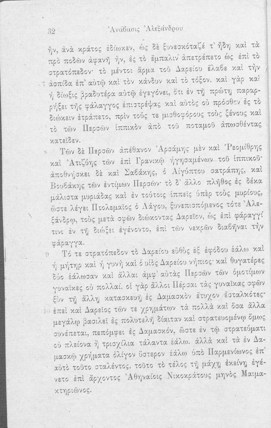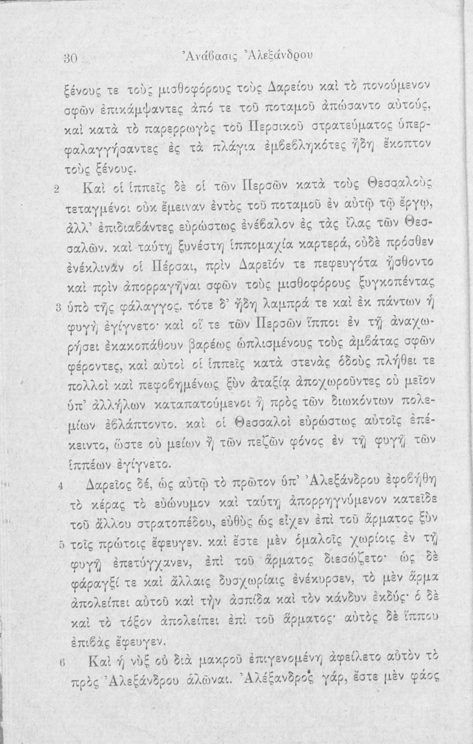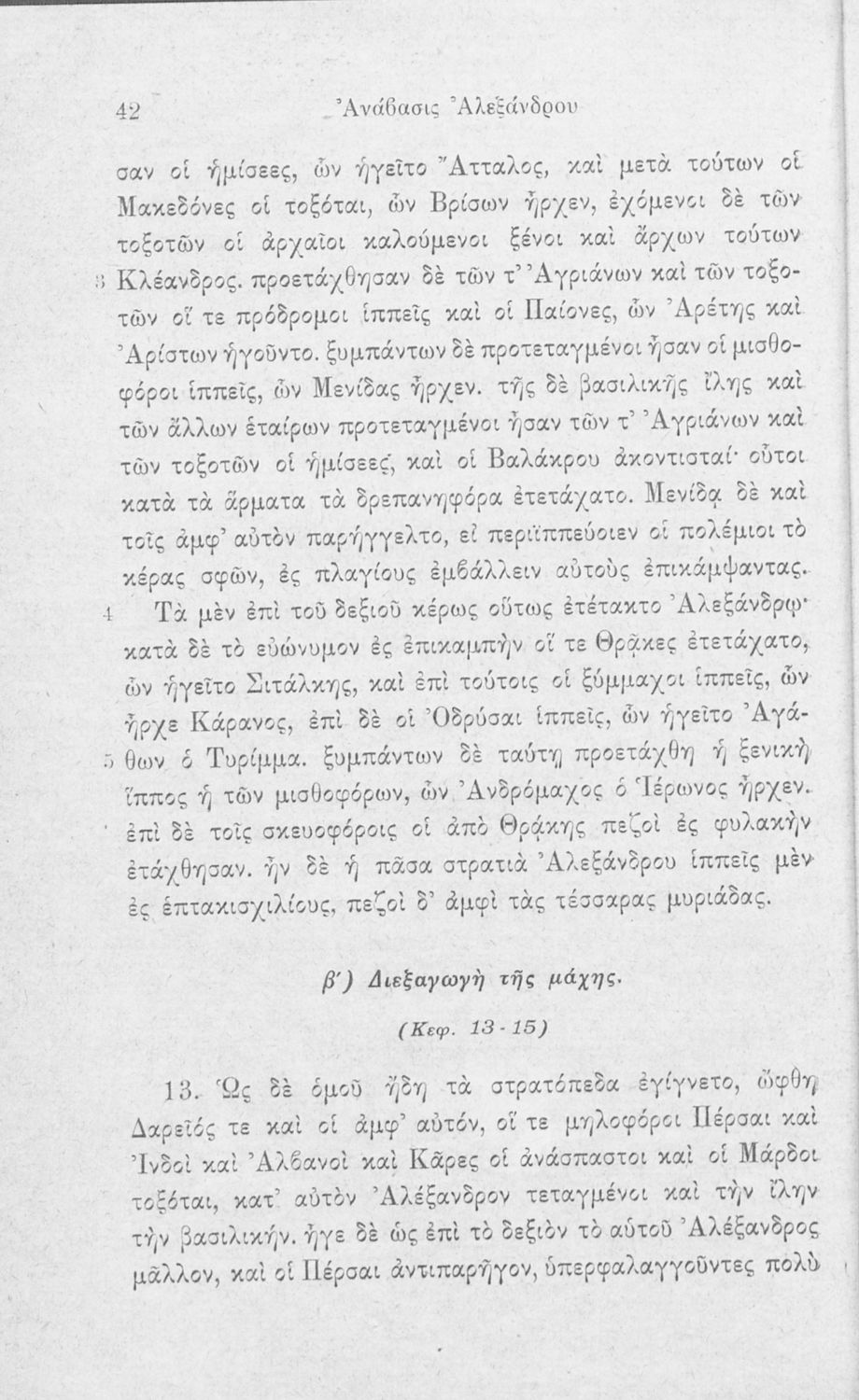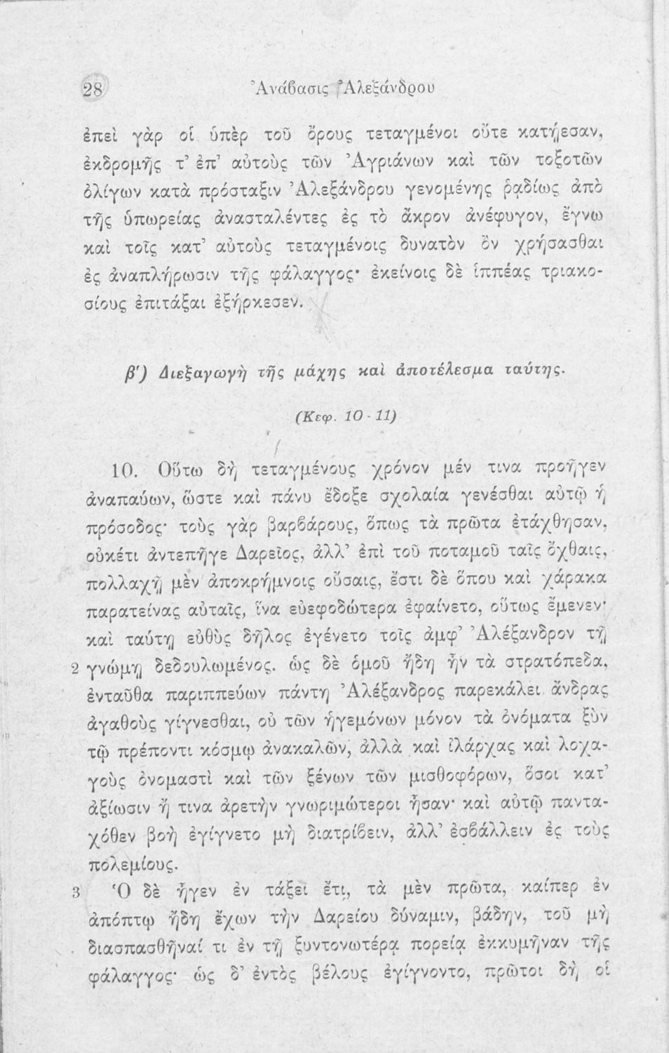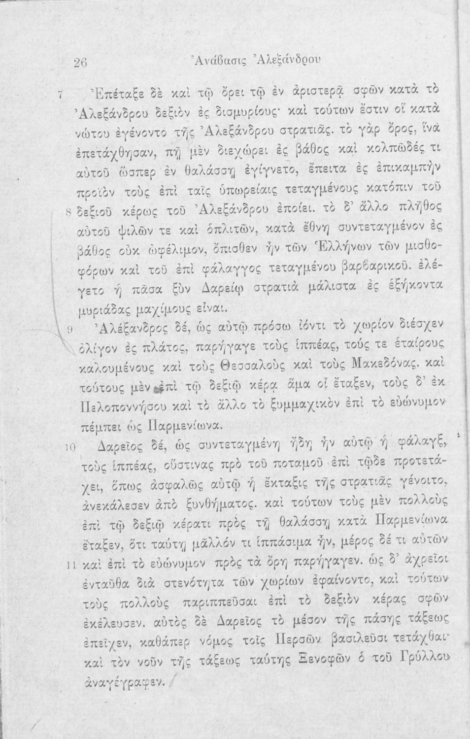 Σχολικό εγχειρίδιο Αρχαίων Ελληνικών Α΄ Γυμνασίου που περιλαμβάνει αποσπάσματα από την Ανάβαση του Αλέξανδρου του Αρριανού, εισαγωγή στη ζωή και το έργο του και ερμηνευτικές παρατηρήσεις.