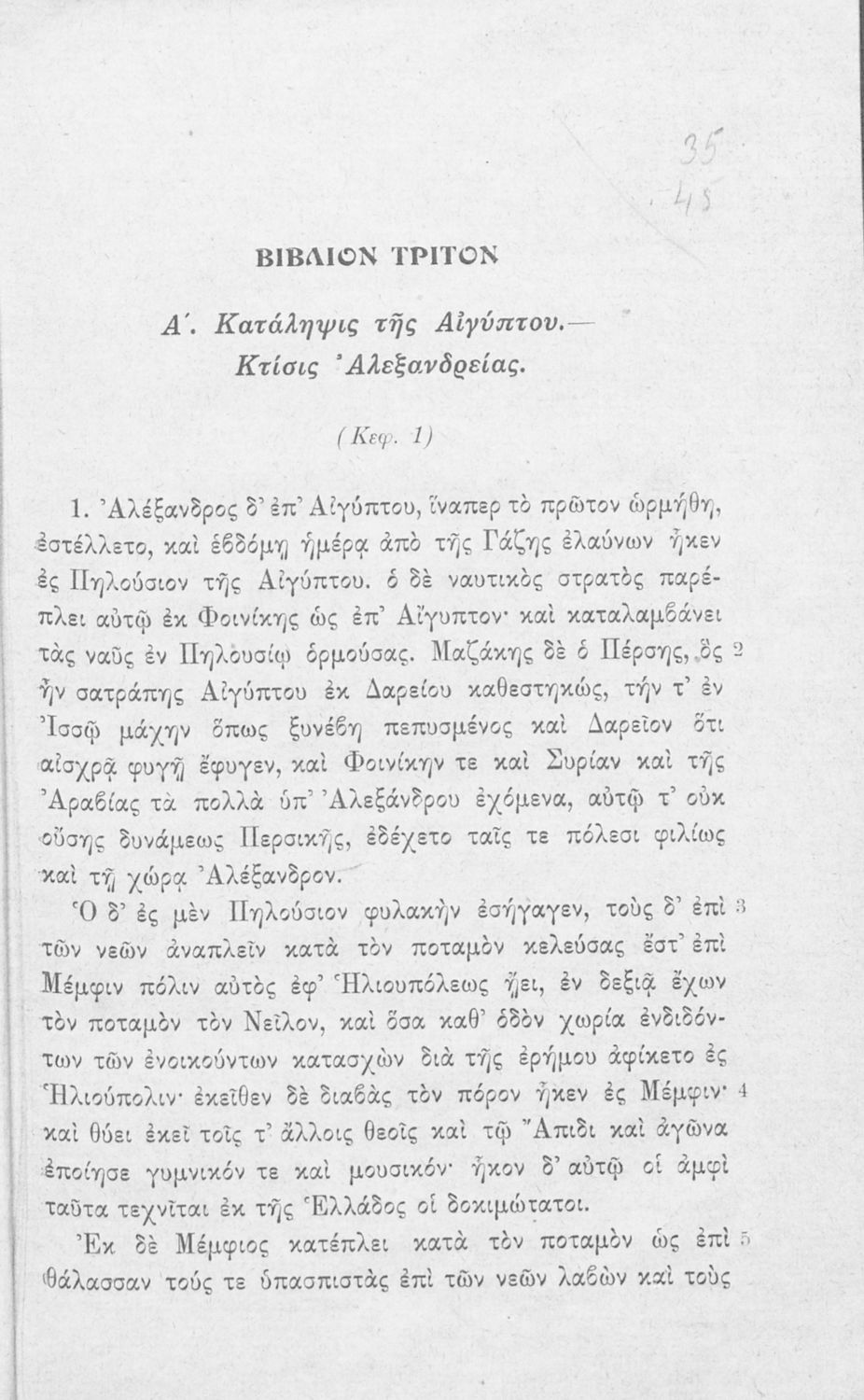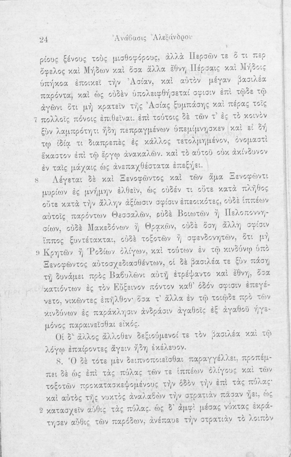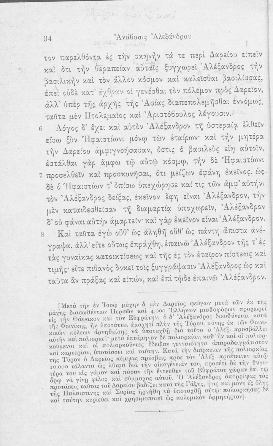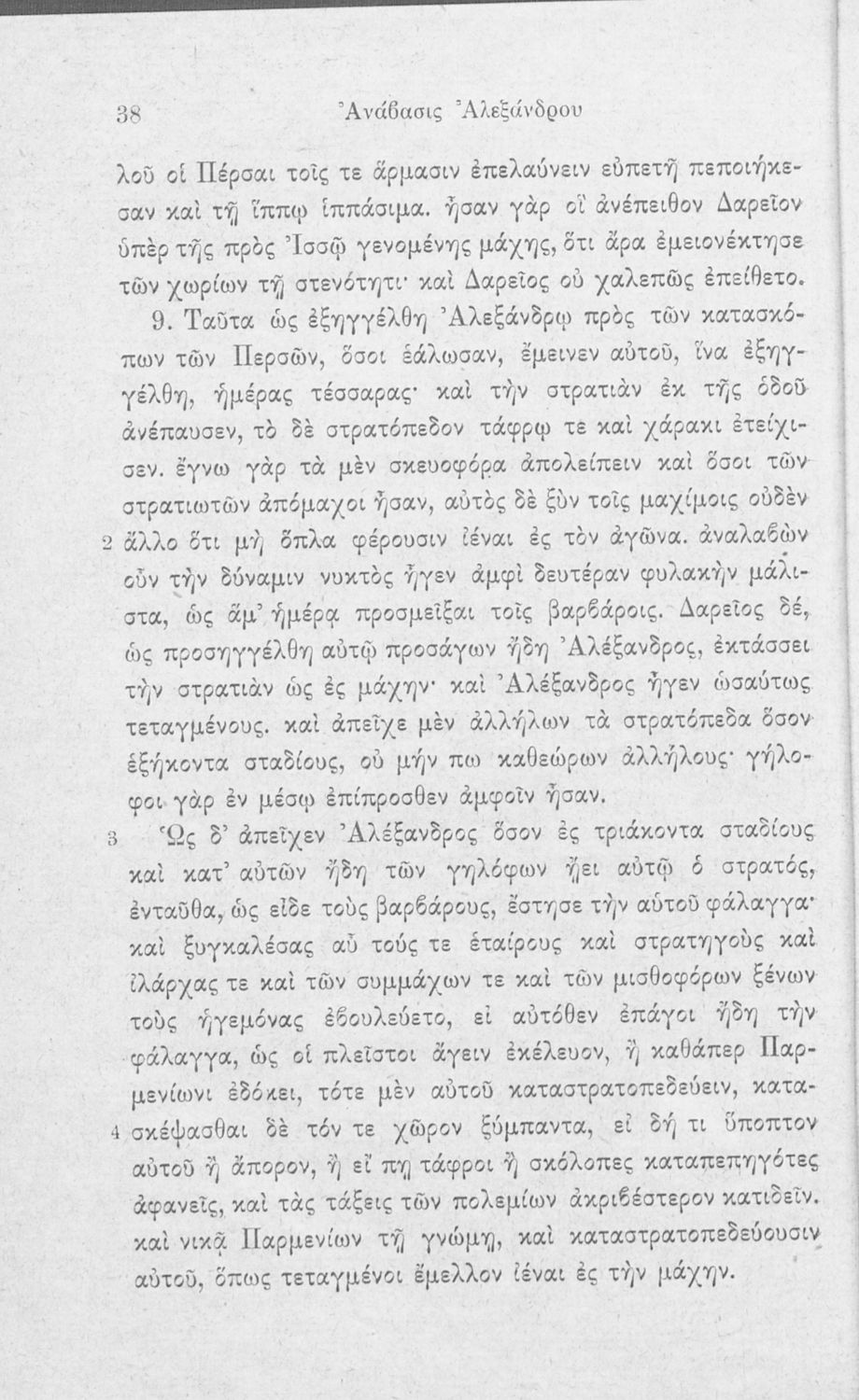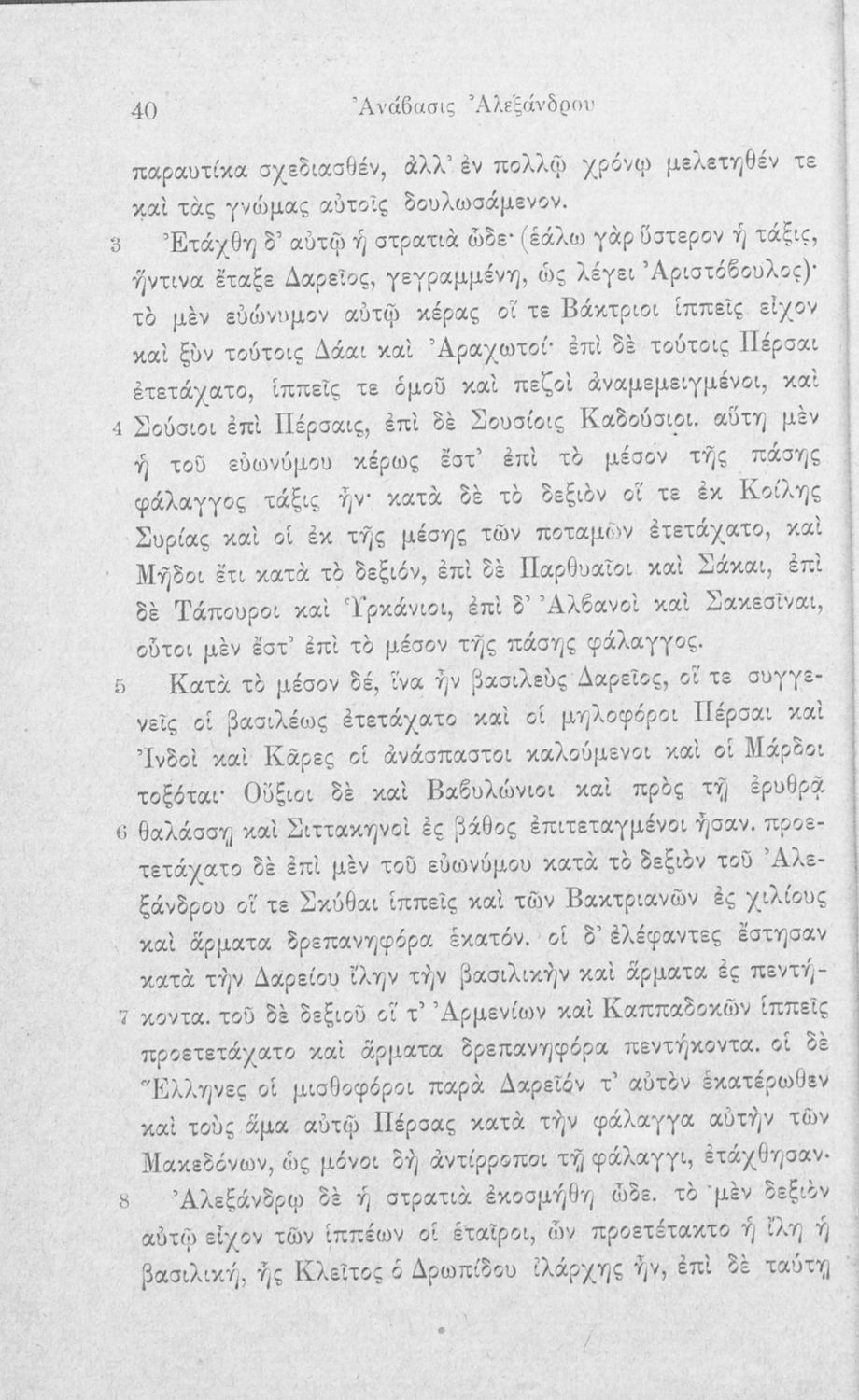 Σχολικό εγχειρίδιο Αρχαίων Ελληνικών Α΄ Γυμνασίου που περιλαμβάνει αποσπάσματα από την Ανάβαση του Αλέξανδρου του Αρριανού, εισαγωγή στη ζωή και το έργο του και ερμηνευτικές παρατηρήσεις.
