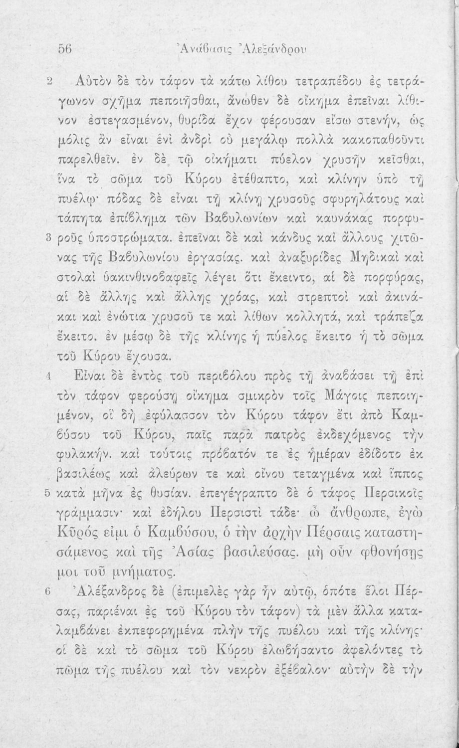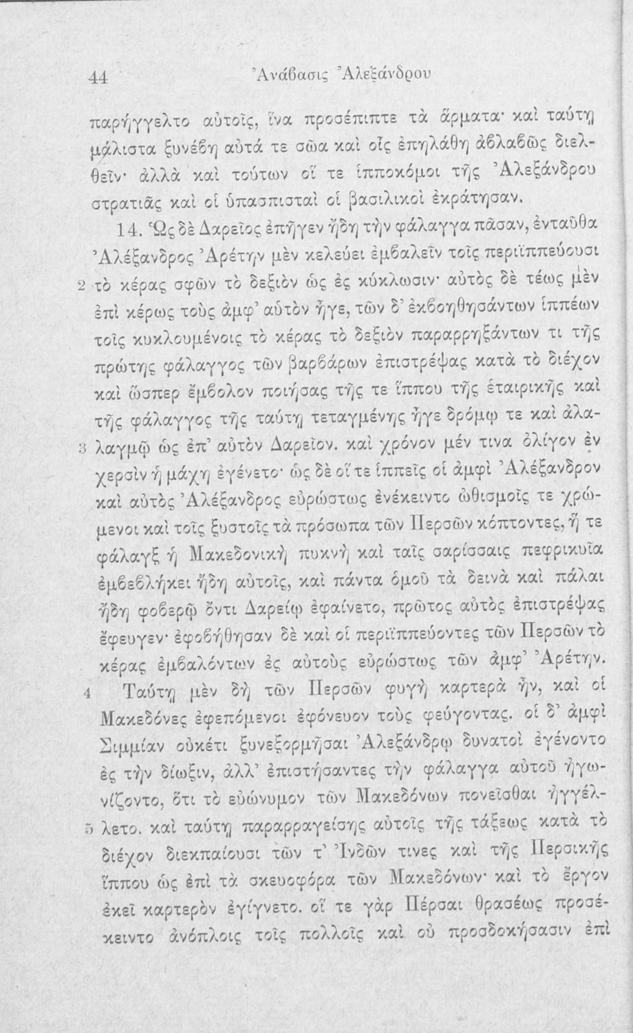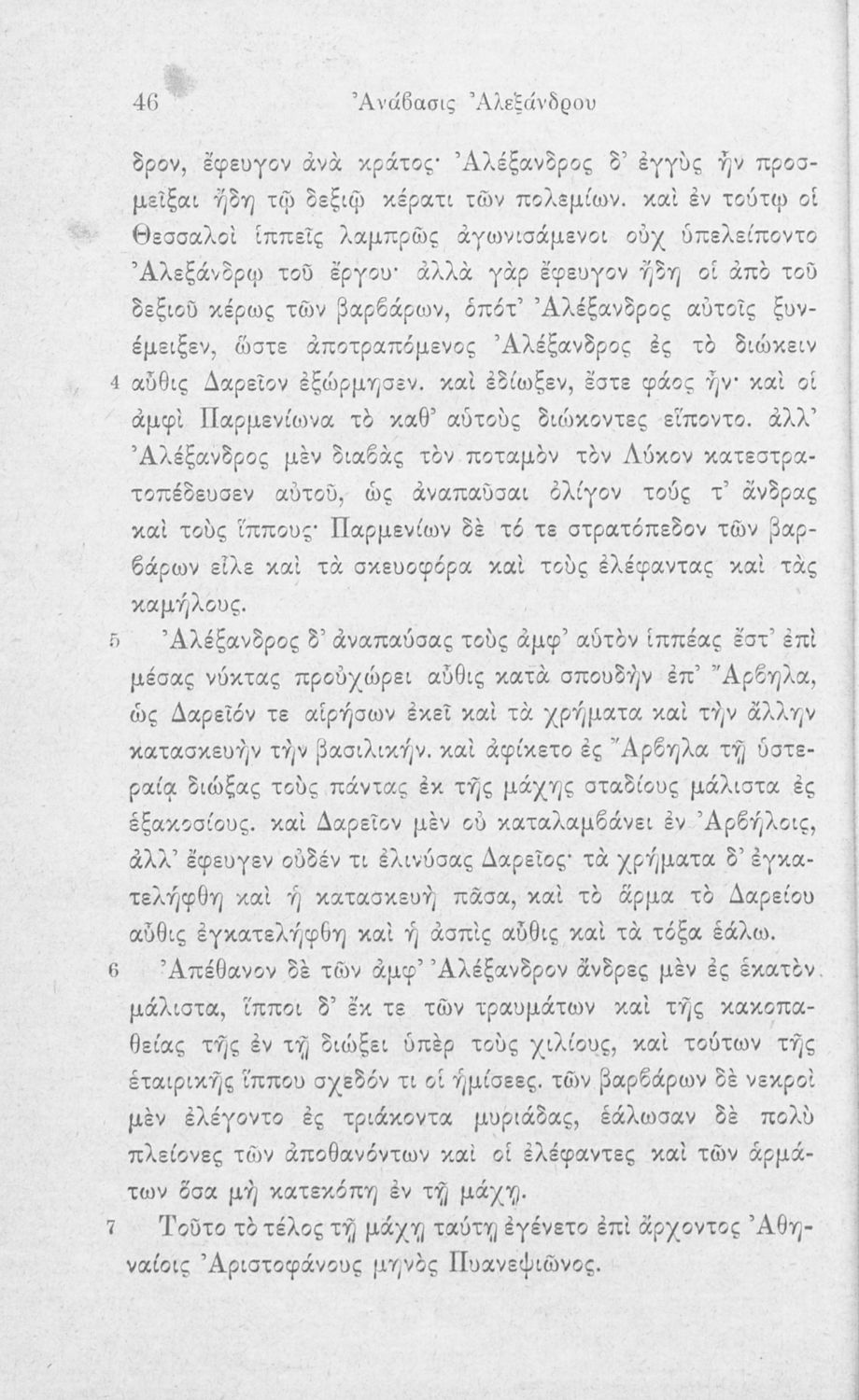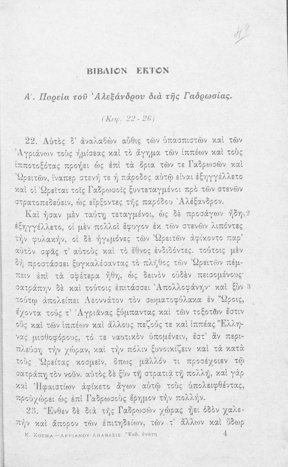 Σχολικό εγχειρίδιο Αρχαίων Ελληνικών Α΄ Γυμνασίου που περιλαμβάνει αποσπάσματα από την Ανάβαση του Αλέξανδρου του Αρριανού, εισαγωγή στη ζωή και το έργο του και ερμηνευτικές παρατηρήσεις.