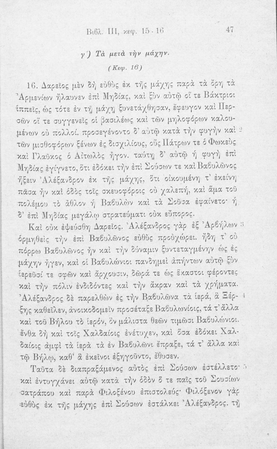 LDR 01353 2200205 4500 035 ## _a02-01673 040 ## _aΕλληνικό Λογοτεχνικό και Ιστορικό Αρχείο 041 ## _ael 100 ## _aΑρριανός (Lucius Flavius Arrianus) _aΚυριάκος Κοσμάς (σχόλια) 110 ## _a1927 ΑΡΡ 245 0# _aΑρριανού Ανάβασις Αλεξάνδρου, κατ΄ εκλογήν εκδοθείσα, δια την Α΄ τάξιν των Γυμνασίων 250 ## _a9η Έκδοση 260 ## _aΑθήνα _bΙωάννης Δ. Κολλάρος και ΣΙΑ _c1927 300 ## _a150 _bΕικόνες (ασπρόμαυρες), Σκίτσα (ασπρόμαυρα), Χάρτες (ασπρόμαυροι) 520 ## _aΣχολικό εγχειρίδιο Αρχαίων Ελληνικών Α΄ Γυμνασίου που περιλαμβάνει αποσπάσματα από την Ανάβαση του Αλέξανδρου του Αρριανού, εισαγωγή στη ζωή και το έργο του και ερμηνευτικές παρατηρήσεις. 521 ## _aΑ' Γυμνασίου 522 ## _aΕλλάδα 546 ## _aΚαθαρεύουσα 563 ## _aΣκληρό Εξώφυλλο 650 #4 _aΑλέξανδρος _aΑρριανός _aΓαυγάμηλα _aΓρανικός _aΠέρσες