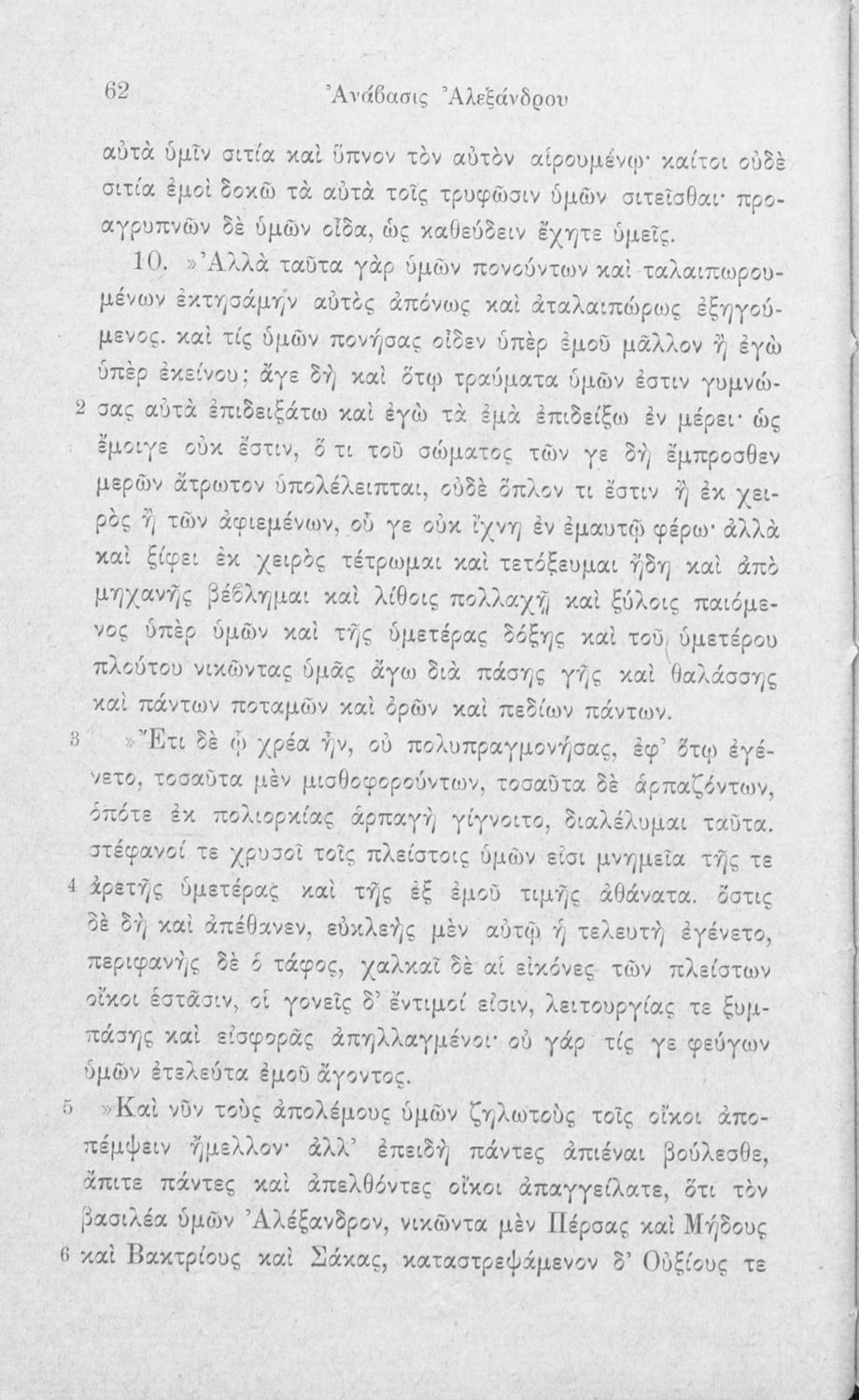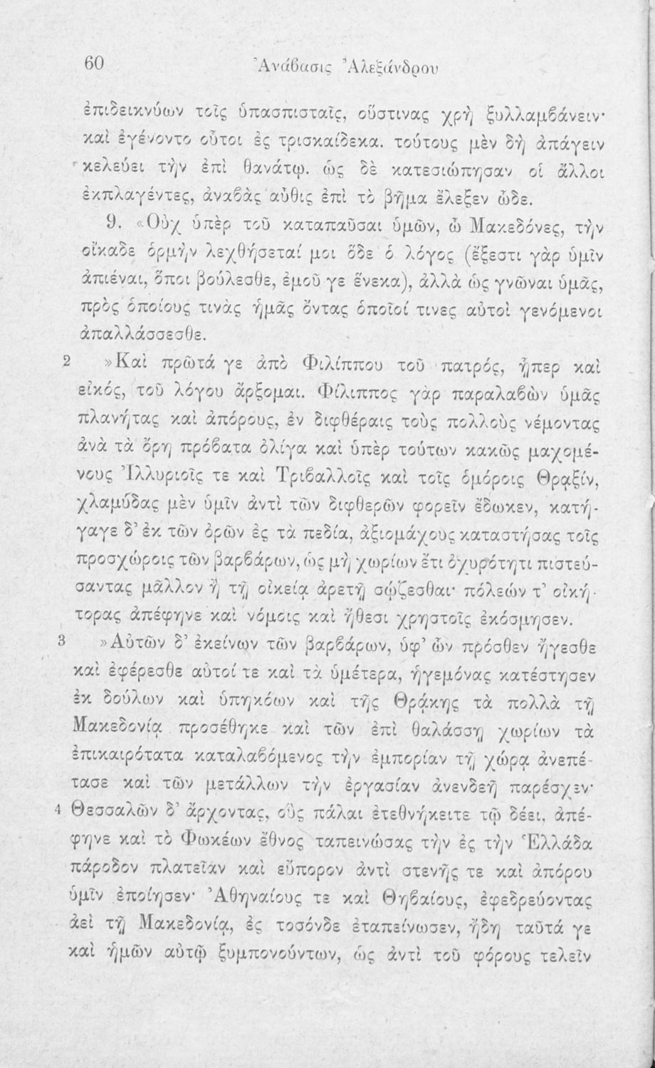 Σχολικό εγχειρίδιο Αρχαίων Ελληνικών Α΄ Γυμνασίου που περιλαμβάνει αποσπάσματα από την Ανάβαση του Αλέξανδρου του Αρριανού, εισαγωγή στη ζωή και το έργο του και ερμηνευτικές παρατηρήσεις.