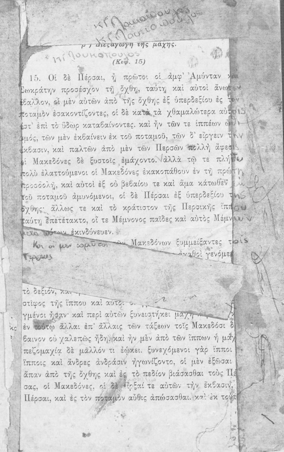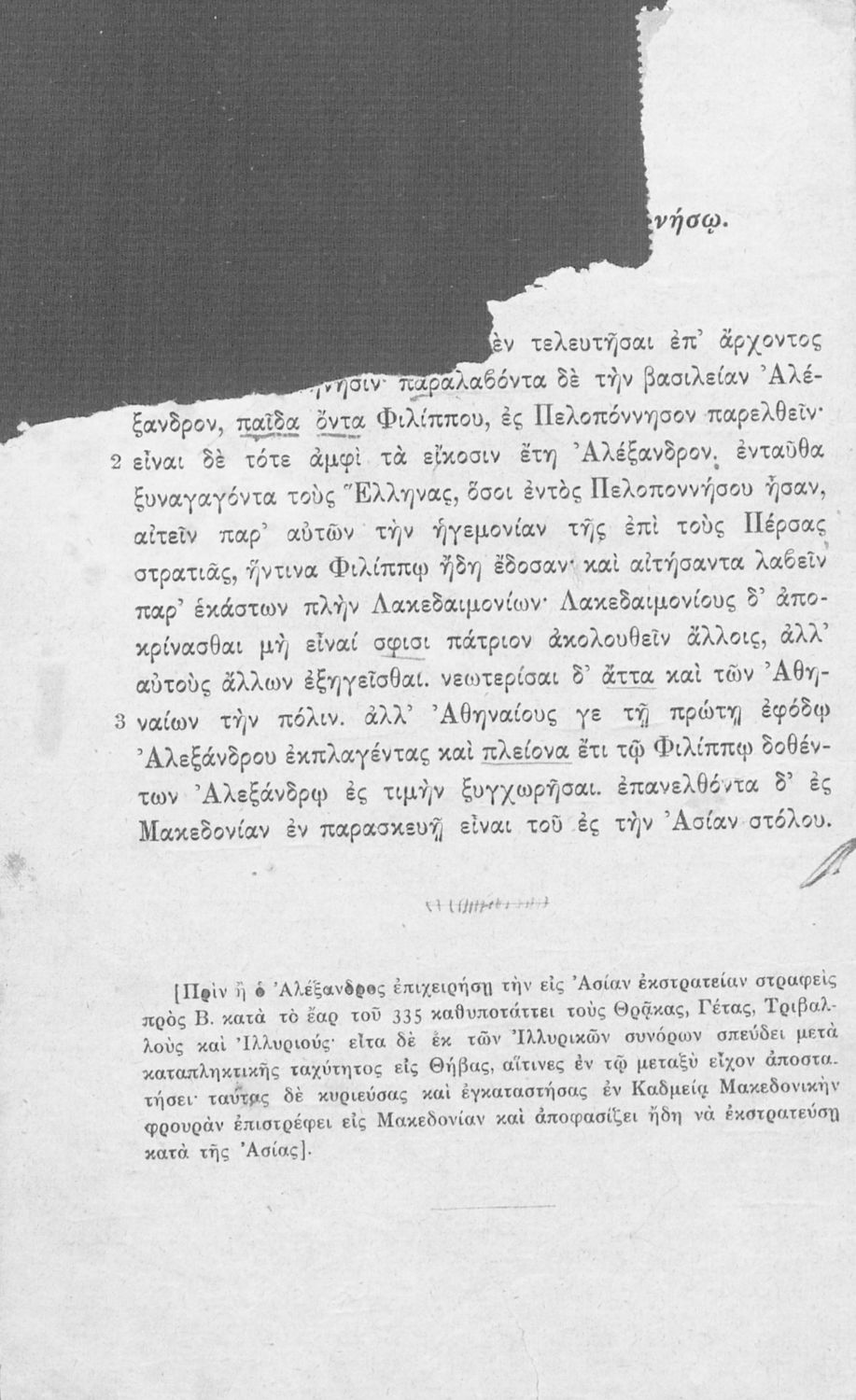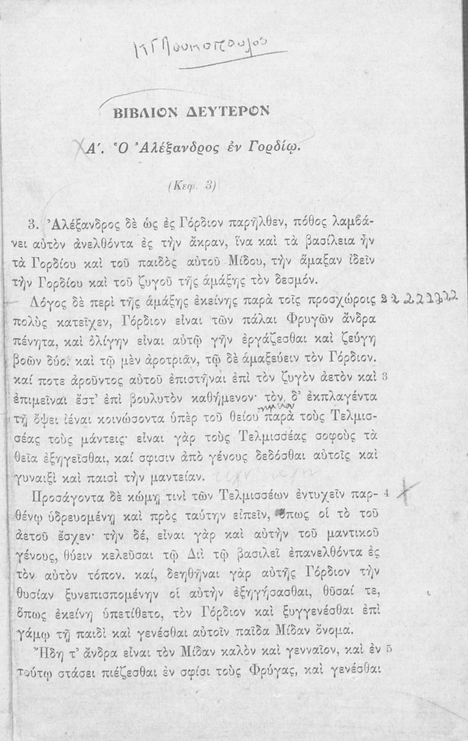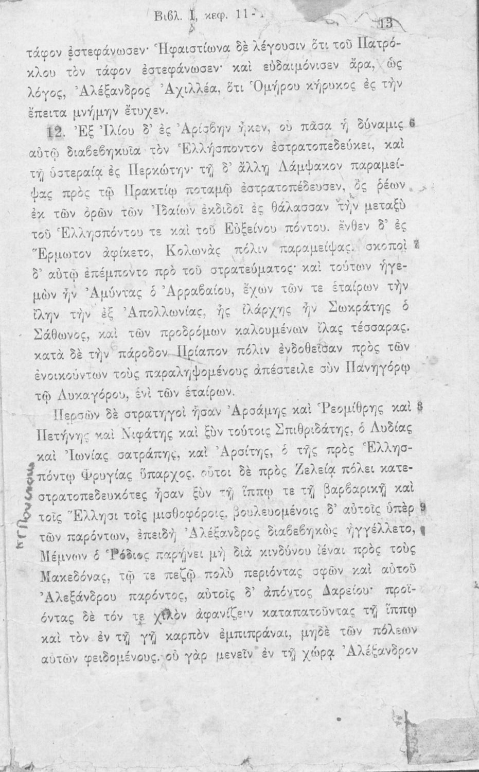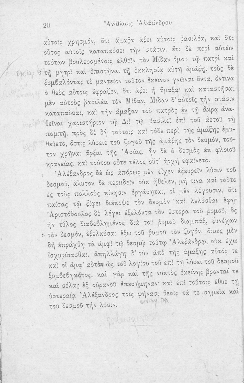 Σχολικό εγχειρίδιο Αρχαίων Ελληνικών Α΄ Γυμνασίου που περιλαμβάνει αποσπάσματα από την Ανάβαση του Αλέξανδρου του Αρριανού, εισαγωγή στη ζωή και το έργο του και ερμηνευτικές παρατηρήσεις.