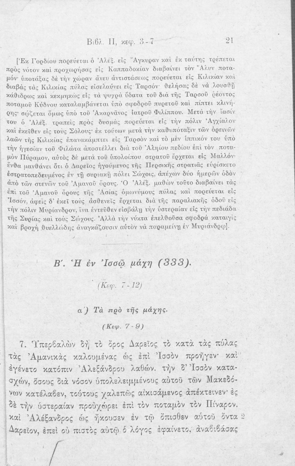 LDR 01353 2200205 4500 035 ## _a02-01673 040 ## _aΕλληνικό Λογοτεχνικό και Ιστορικό Αρχείο 041 ## _ael 100 ## _aΑρριανός (Lucius Flavius Arrianus) _aΚυριάκος Κοσμάς (σχόλια) 110 ## _a1927 ΑΡΡ 245 0# _aΑρριανού Ανάβασις Αλεξάνδρου, κατ΄ εκλογήν εκδοθείσα, δια την Α΄ τάξιν των Γυμνασίων 250 ## _a9η Έκδοση 260 ## _aΑθήνα _bΙωάννης Δ. Κολλάρος και ΣΙΑ _c1927 300 ## _a150 _bΕικόνες (ασπρόμαυρες), Σκίτσα (ασπρόμαυρα), Χάρτες (ασπρόμαυροι) 520 ## _aΣχολικό εγχειρίδιο Αρχαίων Ελληνικών Α΄ Γυμνασίου που περιλαμβάνει αποσπάσματα από την Ανάβαση του Αλέξανδρου του Αρριανού, εισαγωγή στη ζωή και το έργο του και ερμηνευτικές παρατηρήσεις. 521 ## _aΑ' Γυμνασίου 522 ## _aΕλλάδα 546 ## _aΚαθαρεύουσα 563 ## _aΣκληρό Εξώφυλλο 650 #4 _aΑλέξανδρος _aΑρριανός _aΓαυγάμηλα _aΓρανικός _aΠέρσες
