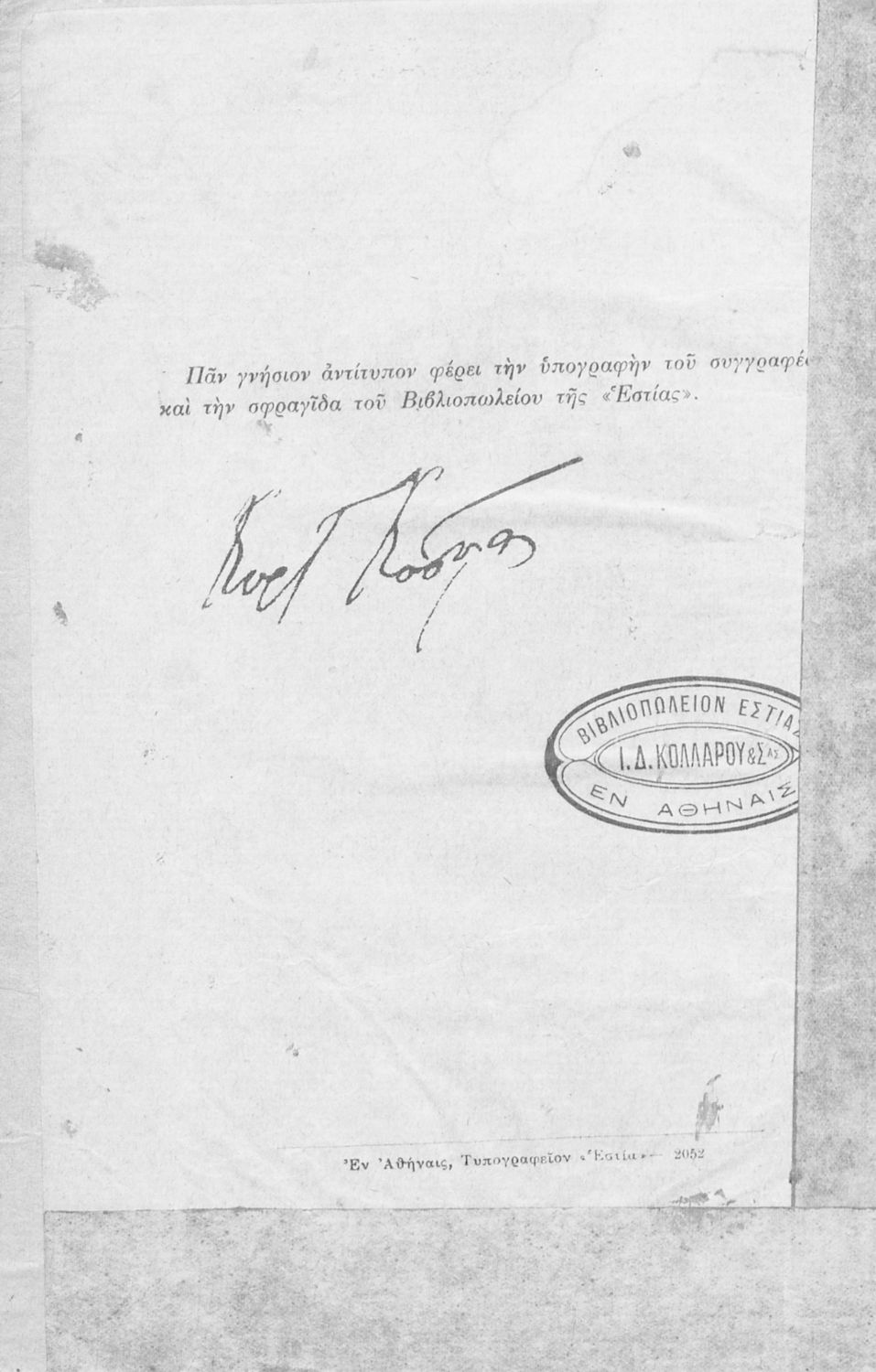 Εκδότης: Ιωάννης Δ. Κολλάρος και ΣΙΑ Έτος έκδοσης: 1927 Τόπος έκδοσης: Αθήνα Έκδοση: 9η |