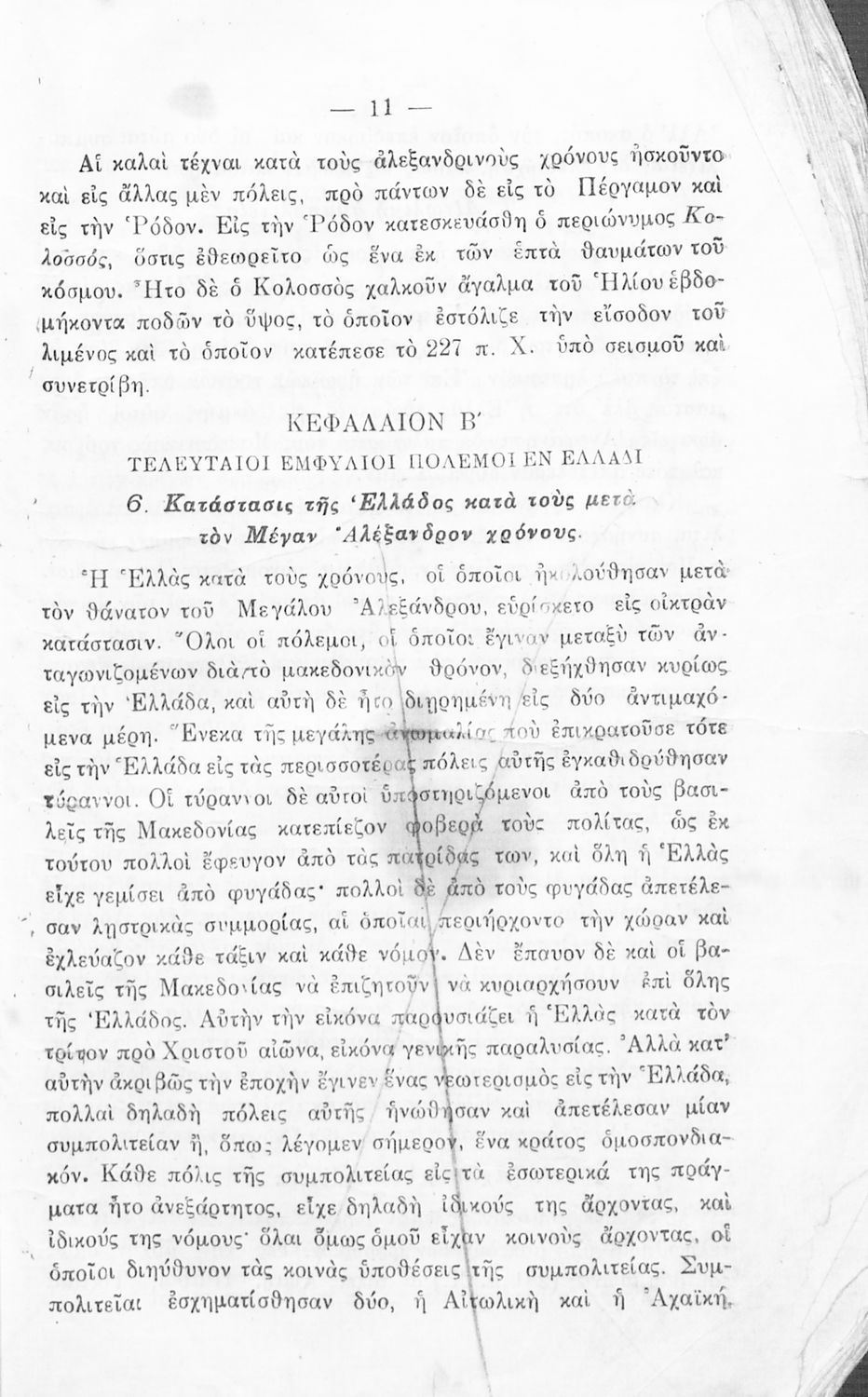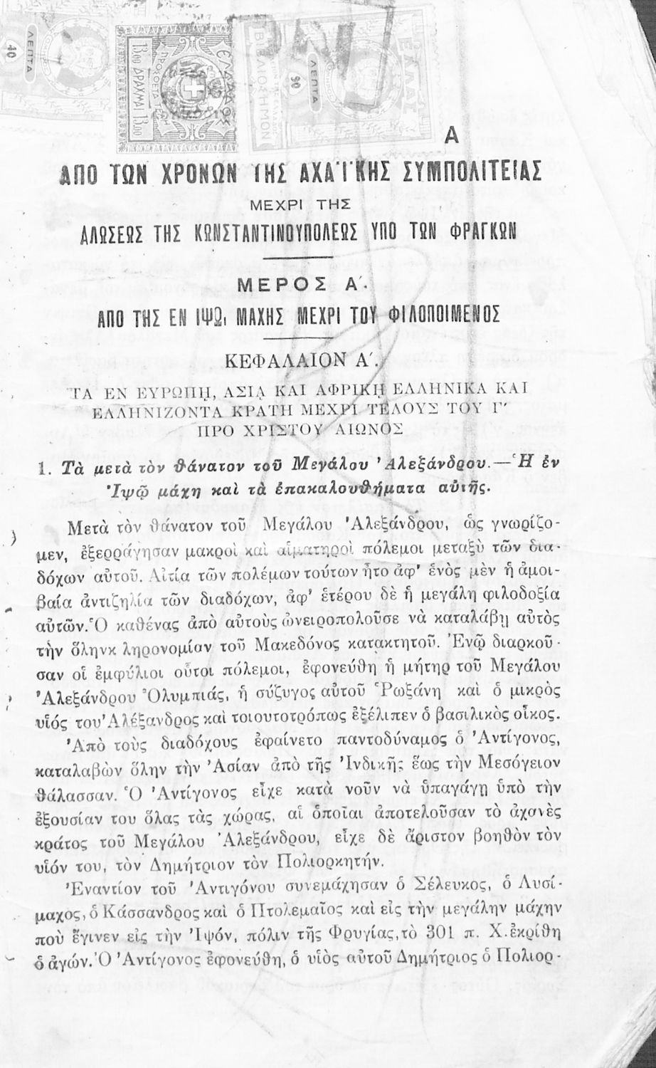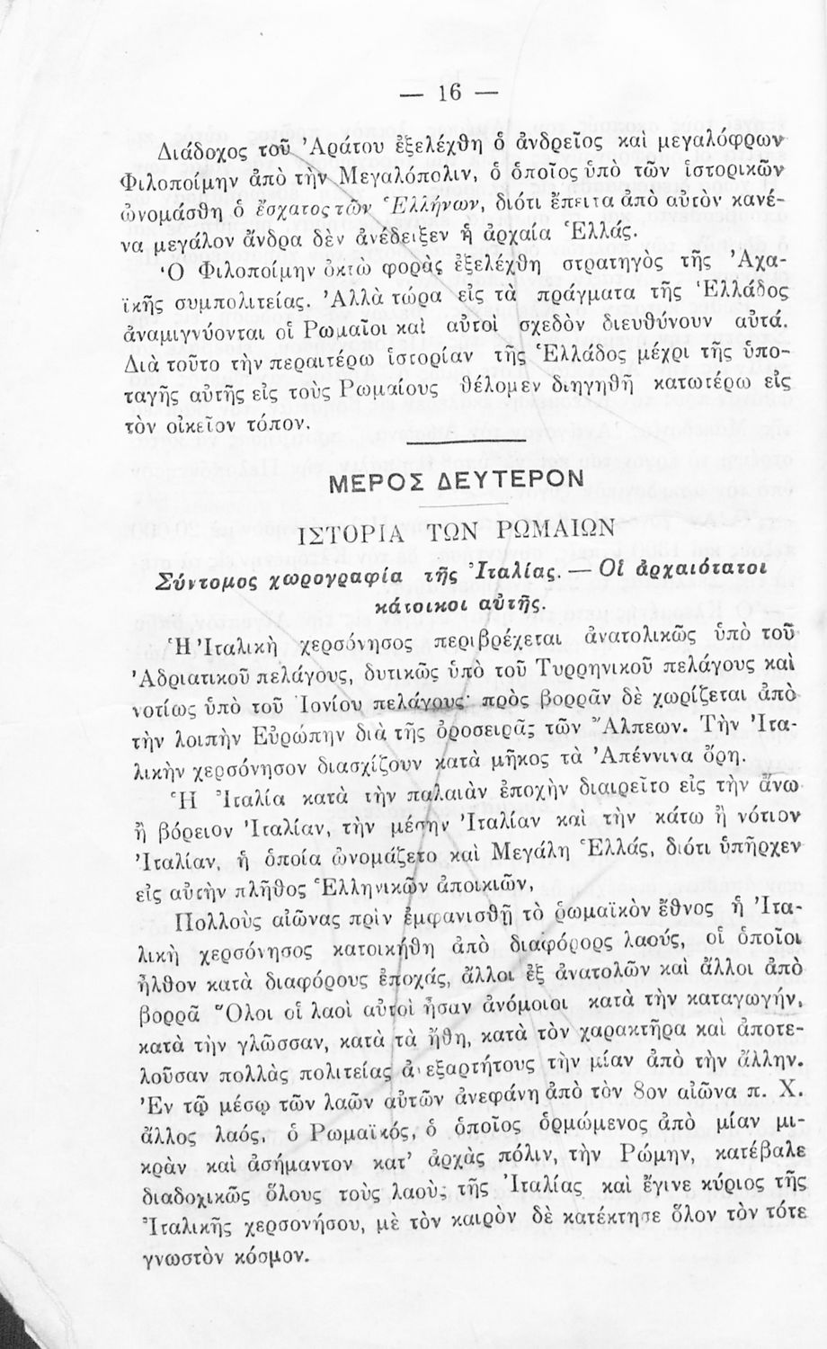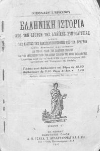 Βαθμίδα εκπαίδευσης: Δευτεροβάθμια Τάξη: Β' Ελληνικού Σχολείου Μάθημα: Ιστορία Γλώσσα: Καθαρεύουσα Παρουσίαση περιεχομένου: Σχολικό εγχειρίδιο Ιστορίας Β' Ελληνικού Σχολείου που καλύπτει την περίοδο από την Αχαϊκή Συμπολιτεία μέχρι την άλωση της Κωνσταντινούπολης από τους Φράγκους |