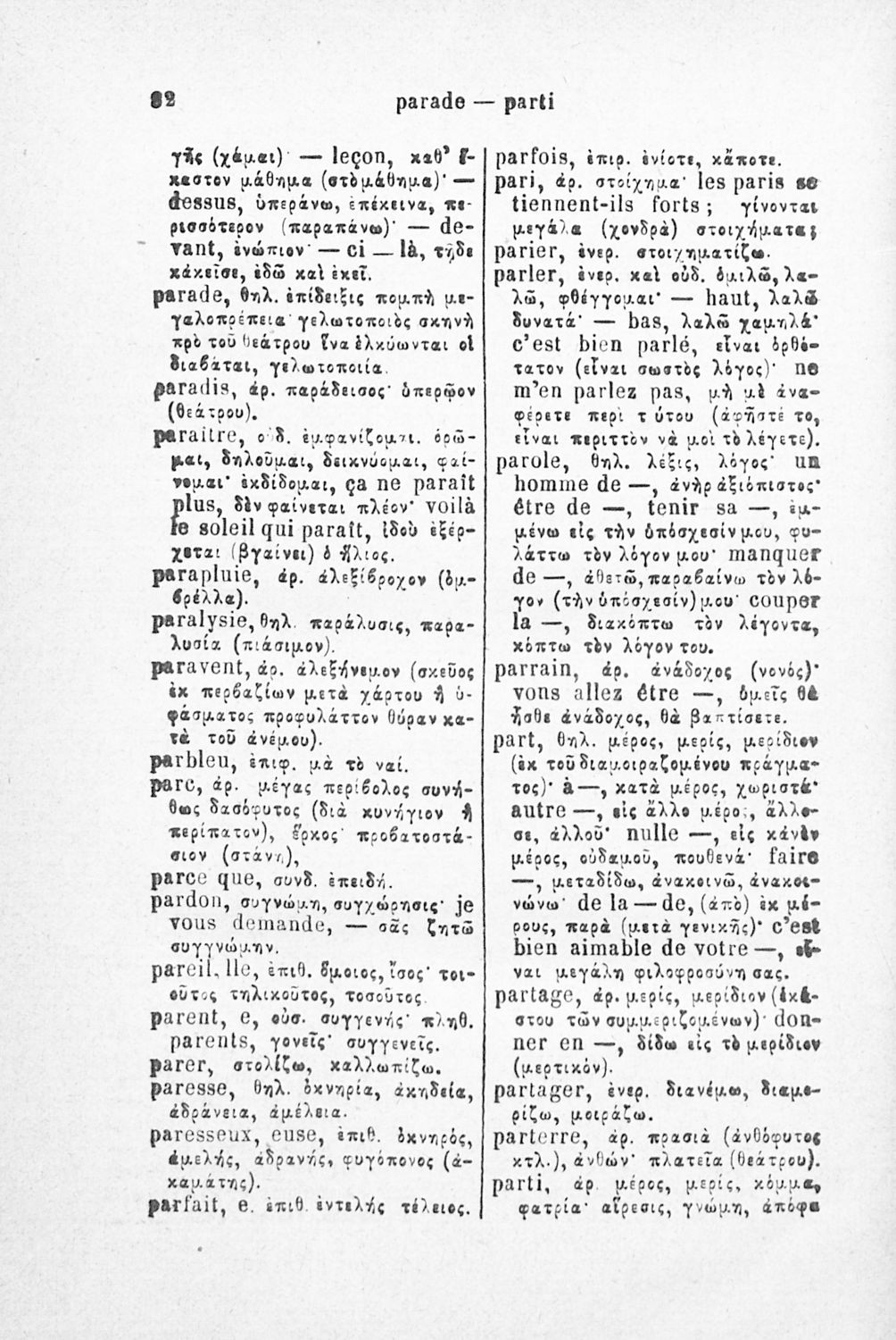Τίτλος: Η Ηχώ των Παρισίων, ήτοι πρακτική άσκησις εις το γαλλιστί διαλέγεσθαι κατά την γερμανικήν μέθοδον του D. Ferdinand Fliessbach, διά φράσεων αδιαλείπτως ακουόμενων εν Παρισίοις