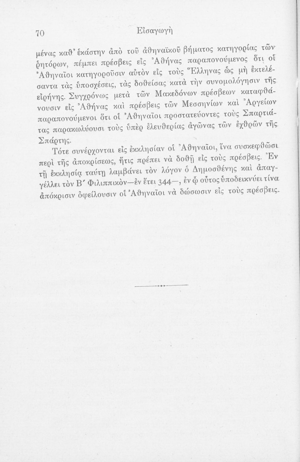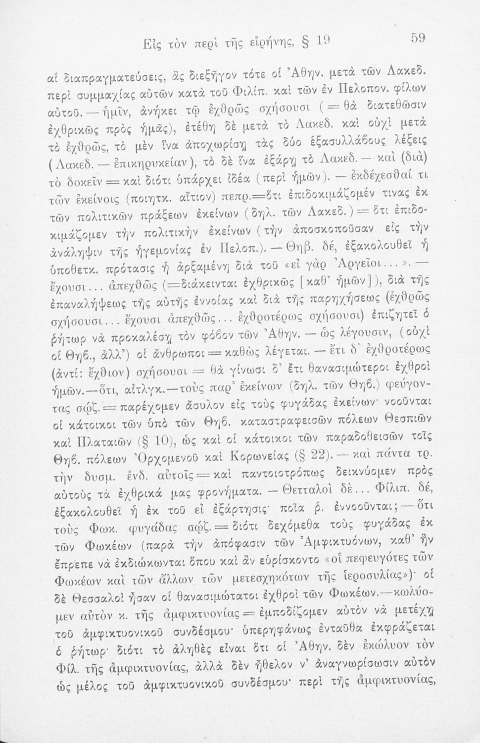 Σχολικό εγχειρίδιο Αρχαίων Ελληνικών Γ΄ Γυμνασίου που περιλαμβάνει τους Λόγους του Δημοσθένη Περί της ειρήνης και Β΄ κατά Φιλίππου, εισαγωγή στη ζωή και το έργο του και ερμηνευτικά και γραμματικά σχόλια.