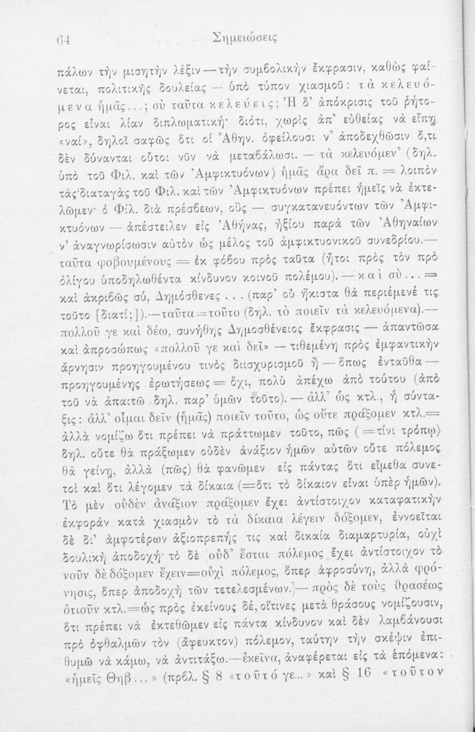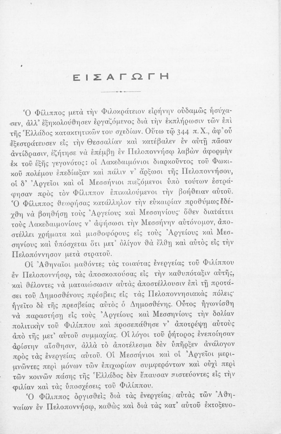 Σχολικό εγχειρίδιο Αρχαίων Ελληνικών Γ΄ Γυμνασίου που περιλαμβάνει τον Λόγο του Δημοσθένη Α΄ κατά Φιλίππου, εισαγωγικά σχόλια στο έργο και τη ζωή του, ερμηνευτικά και γραμματικά σχόλια και παρατηρήσεις.