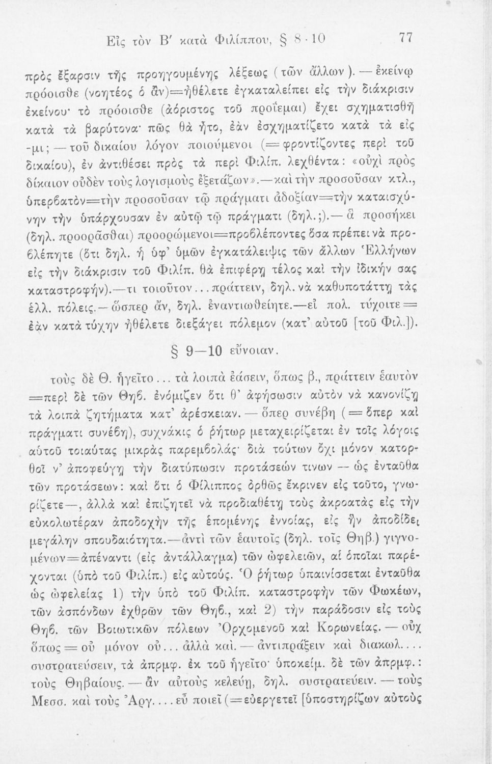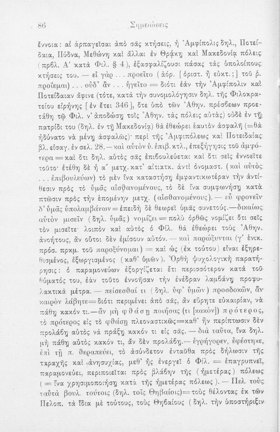 Μαθητικό βοήθημα Αρχαίων Ελληνικών Γ΄ Γυμνασίου που περιλαμβάνει το Λόγο του Δημοσθένη Κατά Φιλίππου Γ΄, εισαγωγή στην υπόθεση και πλοκή του έργου και ερμηνευτικά, πραγματολογικά και γραμματικά σχόλια.