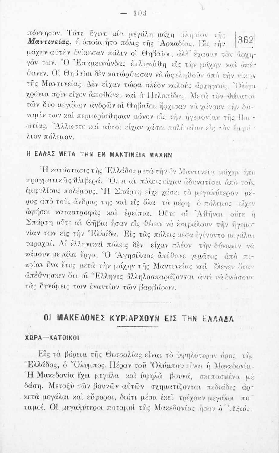 Σχολικό εγχειρίδιο Ιστορίας Α΄ Ελληνικού και Παρθεναγωγείου που καλύπτει την περίοδο από τους μυθικούς και ηρωικούς χρόνους μέχρι την μάχη της Μαντινείας και τον θάνατο του Επαμεινώνδα.