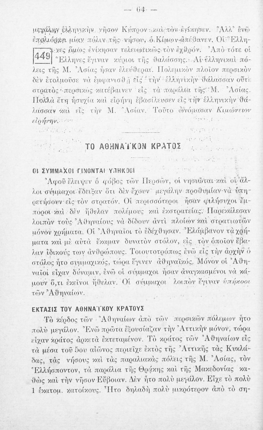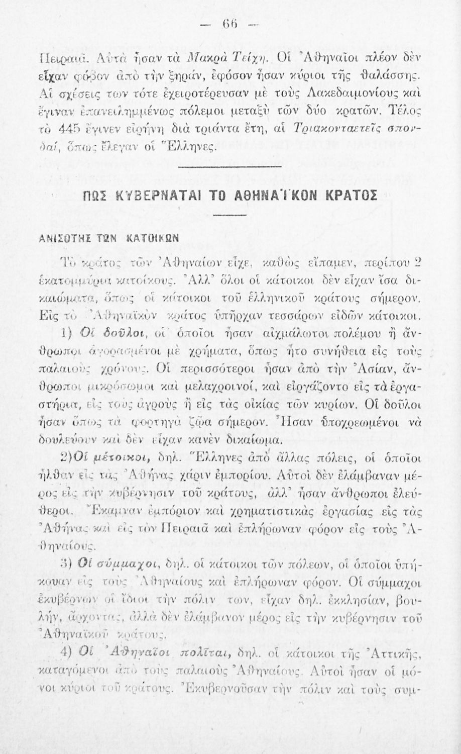 Σχολικό εγχειρίδιο Ιστορίας Α΄ Ελληνικού και Παρθεναγωγείου που καλύπτει την περίοδο από τους μυθικούς και ηρωικούς χρόνους μέχρι την μάχη της Μαντινείας και τον θάνατο του Επαμεινώνδα.
