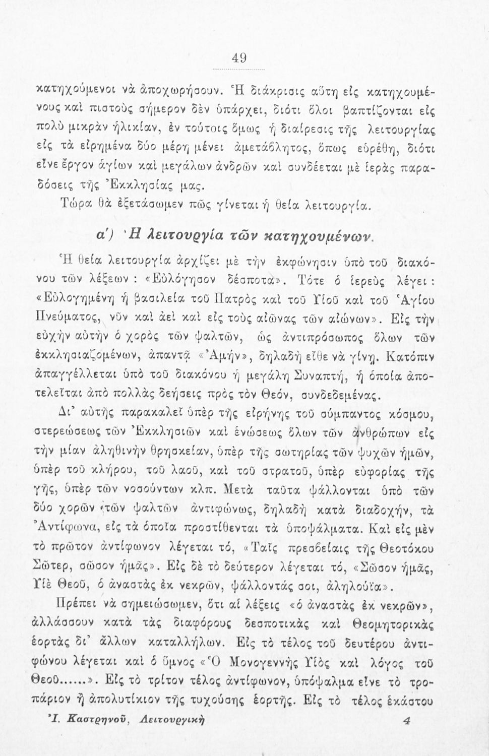 Βαθμίδα εκπαίδευσης: Πρωτοβάθμια Μάθημα: Θρησκευτικά Γλώσσα: Απλή καθαρεύουσα Παρουσίαση περιεχομένου: Σχολικό εγχειρίδιο Θρησκευτικών Δημοτικού που πραγματεύεται το λειτουργικό μέρος της ορθόδοξης παράδοσης. |