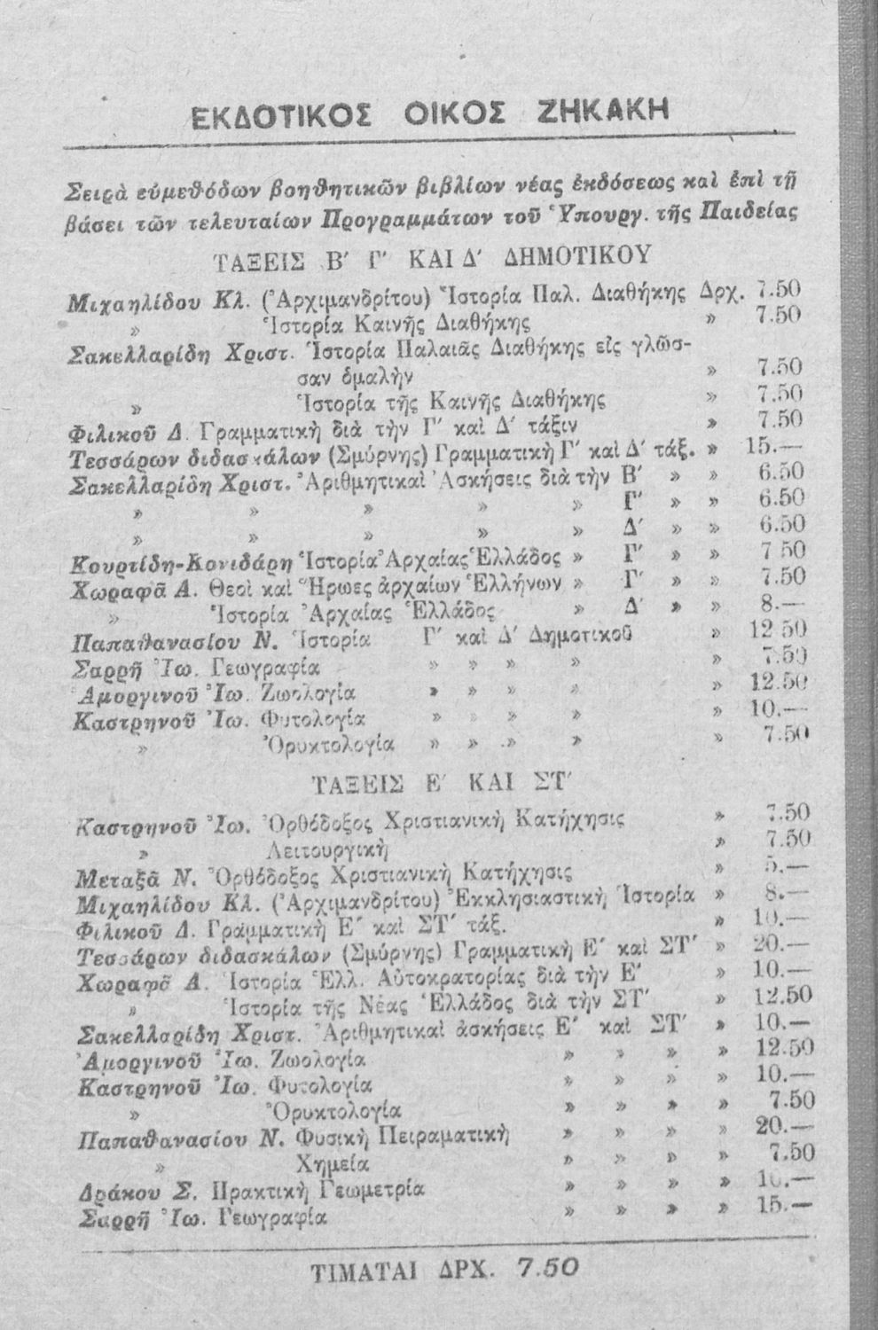 Εκδότης: Μ. Σ. Ζηκάκης Έτος έκδοσης: 1927 Τόπος έκδοσης: Αθήνα |