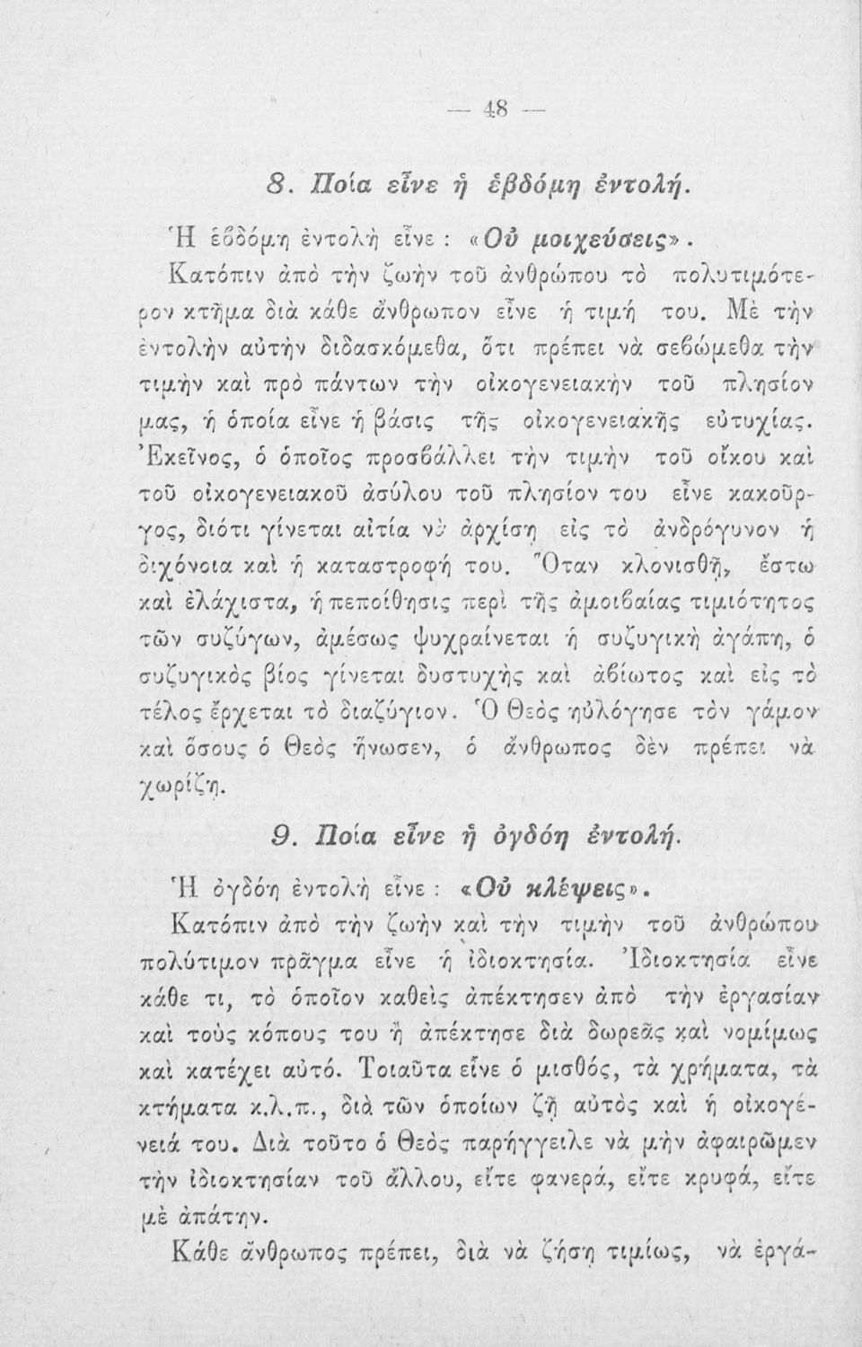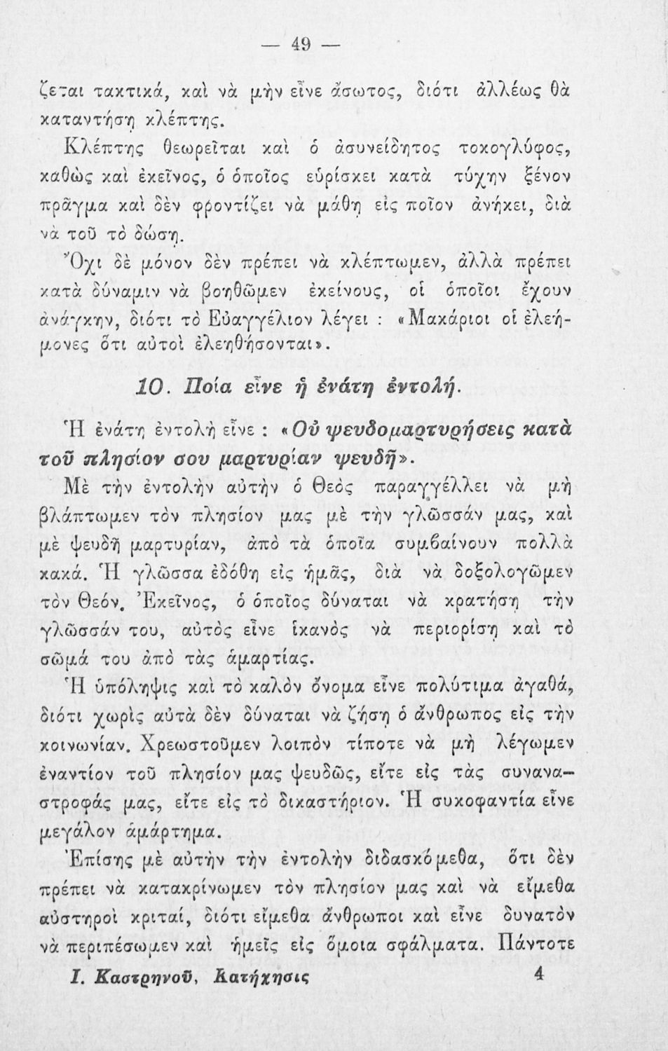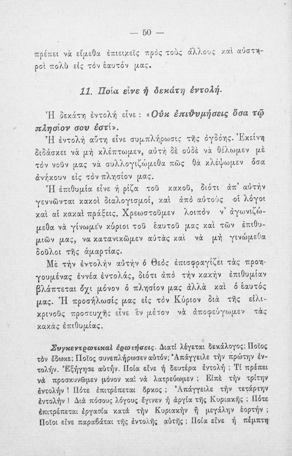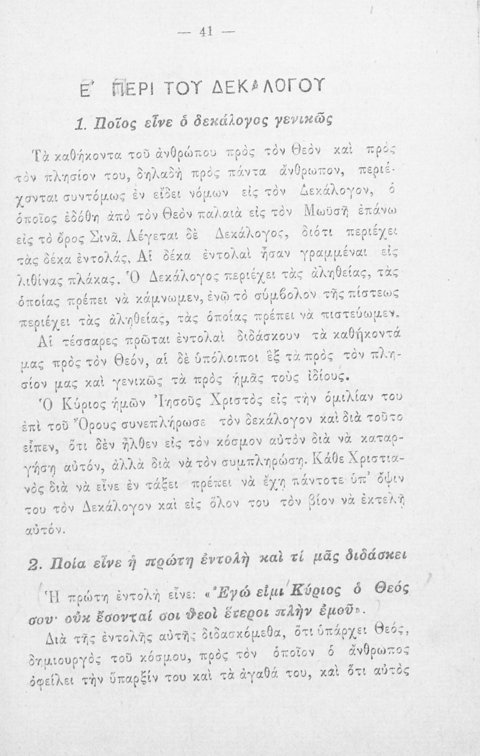 Σχολικό εγχειρίδιο Θρησκευτικών που πραγματεύεται ζητήματα της ορθόδοξης κατήχησης όπως τα μυστήρια και οι Δέκα Εντολές. Περιέχει και ερωτήσεις.