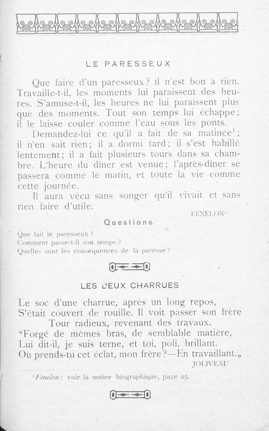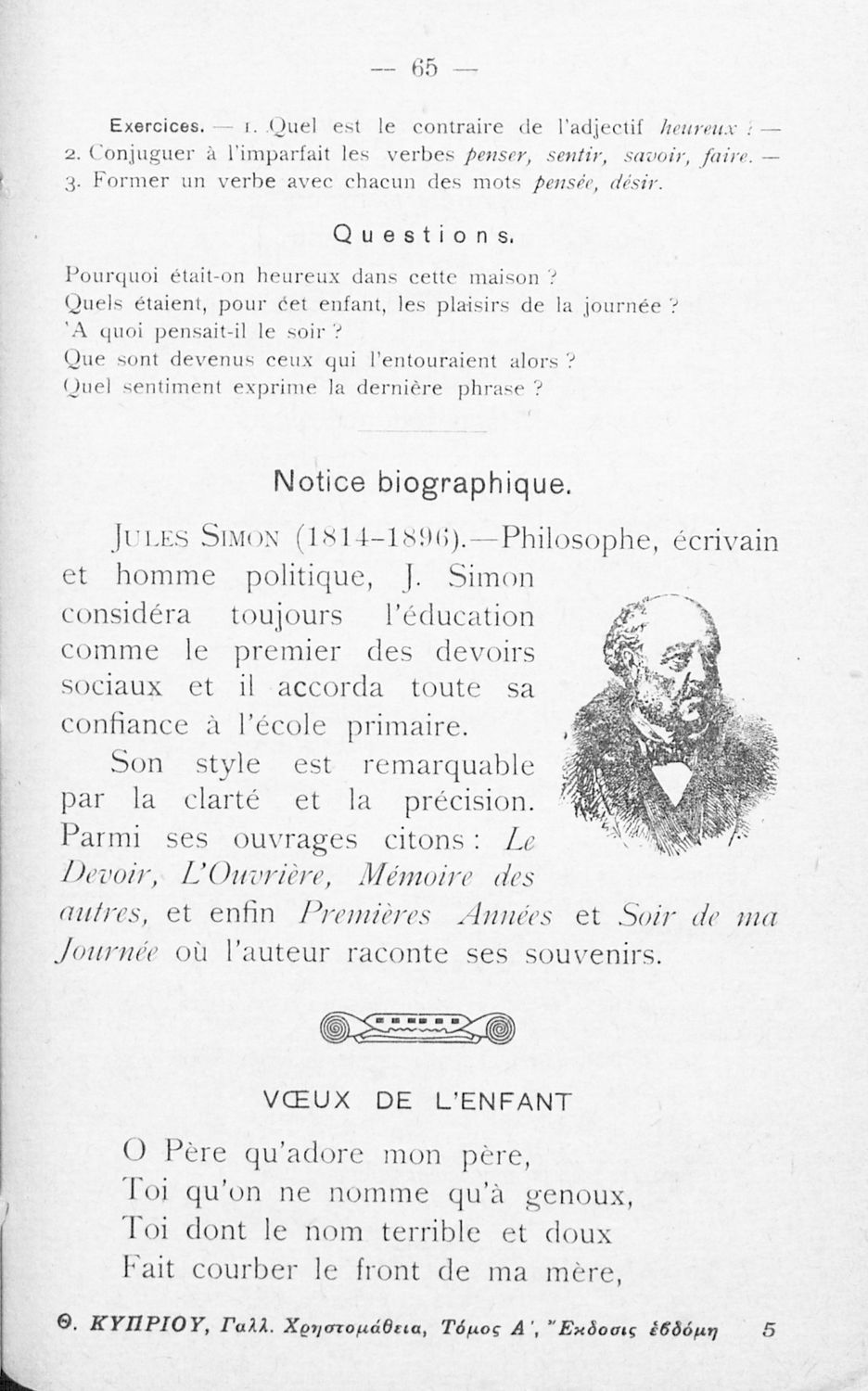 Σχολικό εγχειρίδιο Γαλλικών των Γυμνασίων, Αστικών Σχολείων θηλέων και Διδασκαλείων Δημοτικής Εκπαίδευσης. Κείμενα, ποιήματα, από εποχές και τον κοινωνικό και οικογενειακό βίο, τα οποία συνοδεύονται ασκήσεις ...