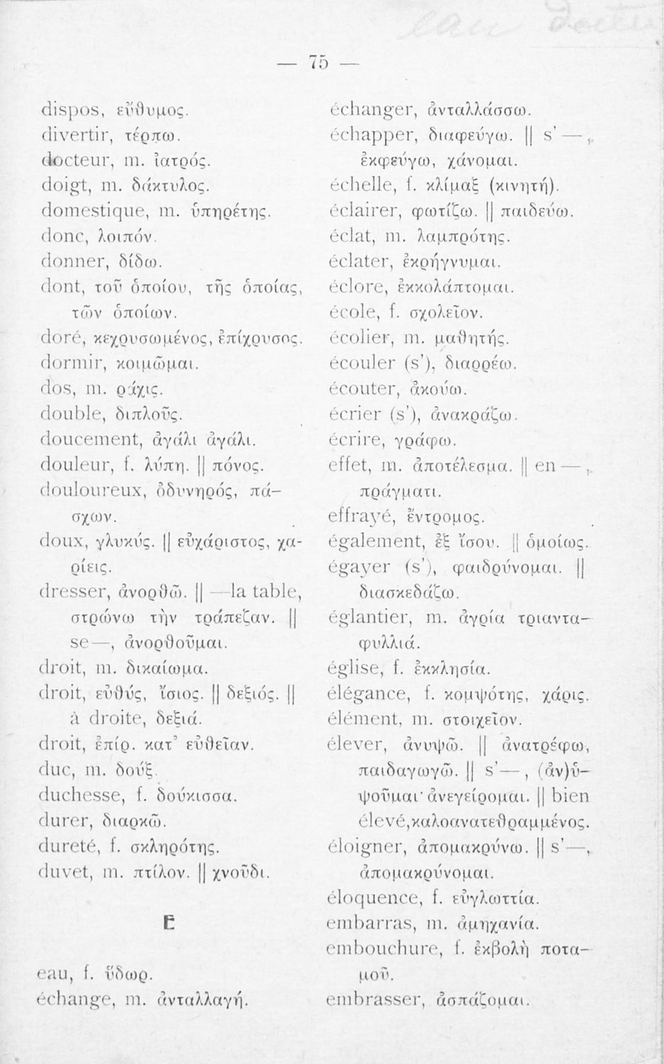 Γραμματική της Γαλλικής γλώσσας για τα Τετρατάξια Γυμνάσια, τη Γ΄ τάξη των Αστικών Σχολείων των Θηλέων και τα Διδασκαλεία της Δημοτικής Εκπαίδευσης που περιλαμβάνει θεωρία, ασκήσεις και λεξιλόγιο.