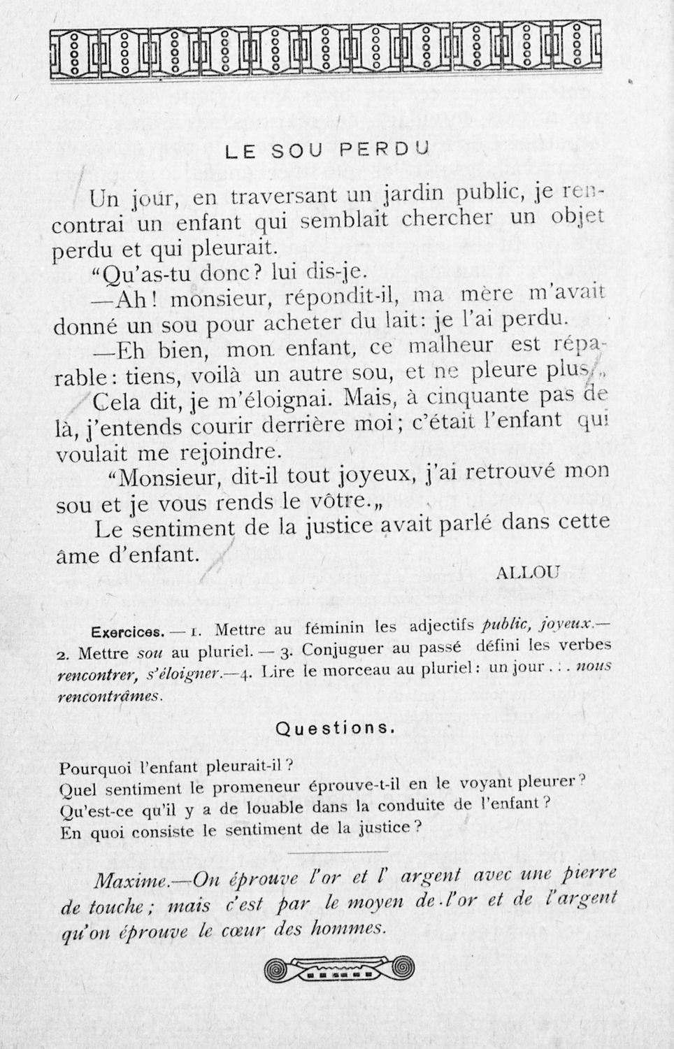 Σχολικό εγχειρίδιο Γαλλικών των Γυμνασίων, Αστικών Σχολείων θηλέων και Διδασκαλείων Δημοτικής Εκπαίδευσης. Κείμενα, ποιήματα, από εποχές και τον κοινωνικό και οικογενειακό βίο, τα οποία συνοδεύονται ασκήσεις ...