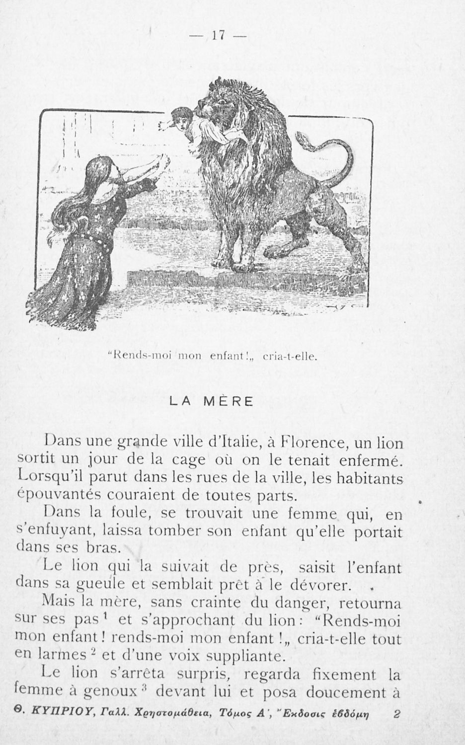 Γαλλική χρηστομάθεια, Τόμος Α΄, διά την Α΄ τάξιν των Γυμνασίων, την αντίστοιχον τάξιν των λοιπών σχολείων της Μέσης Εκπαιδεύσεως και την Γ΄ τάξιν των Αστικών σχολείων θηλέων