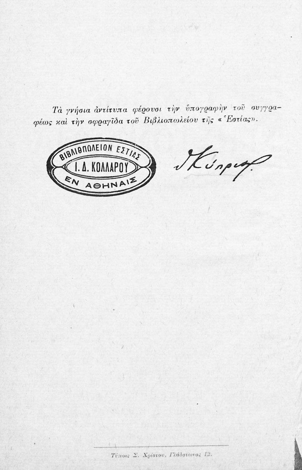 Εκδότης: Ιωάννης Δ. Κολλάρος και ΣΙΑ