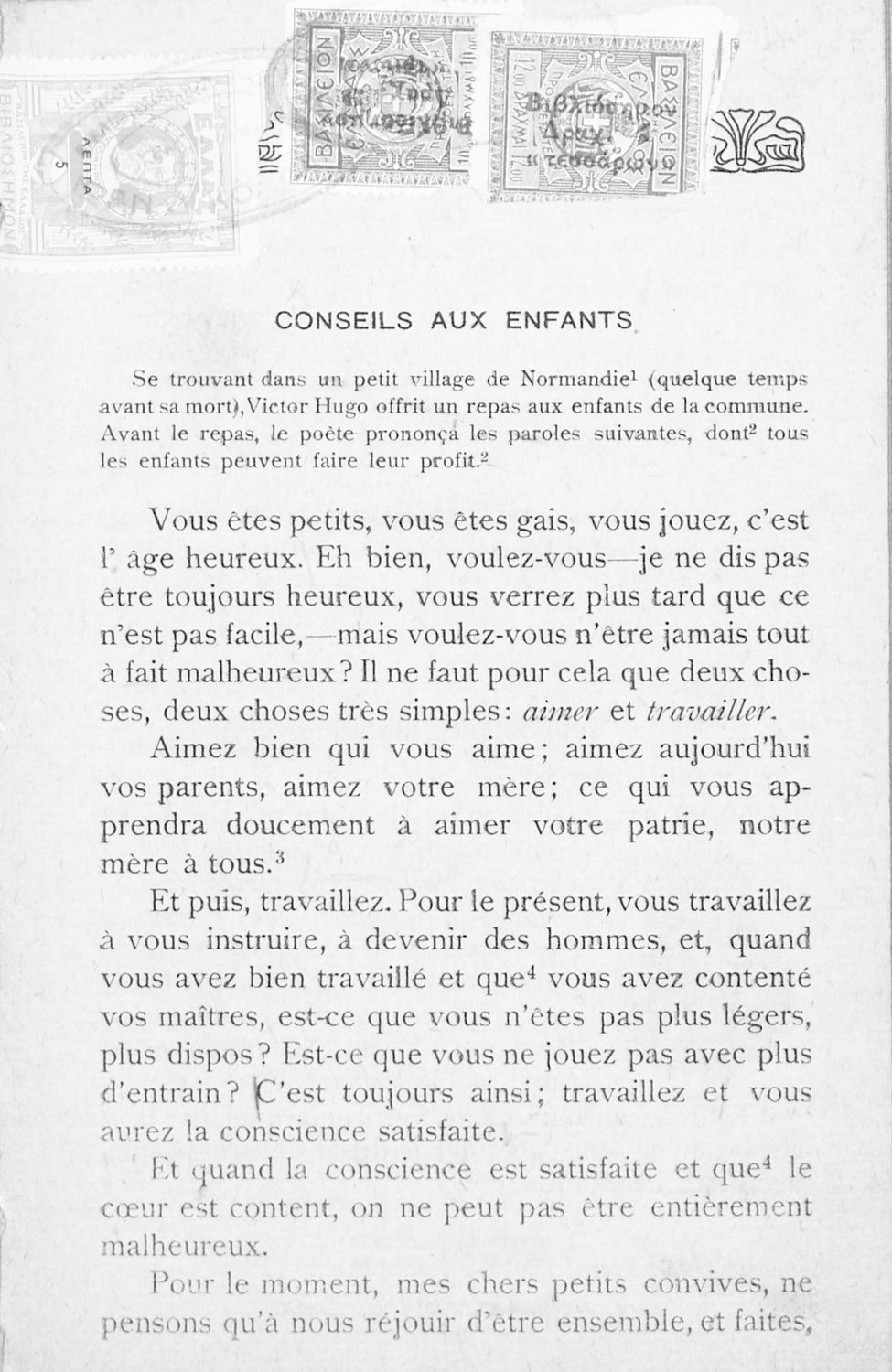 Σχολικό εγχειρίδιο Γαλλικών Α΄ Γυμνασίου και Γ΄ Αστικού Σχολείου που περιλαμβάνει αποσπάσματα έργων επιφανών Γάλλων συγγραφέων, σύντομα βιογραφικά σημειώματα, επεξηγηματικά σχόλια, ασκήσεις και λεξιλόγιο.