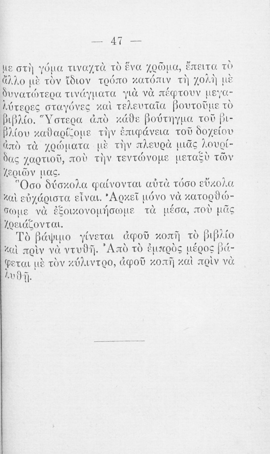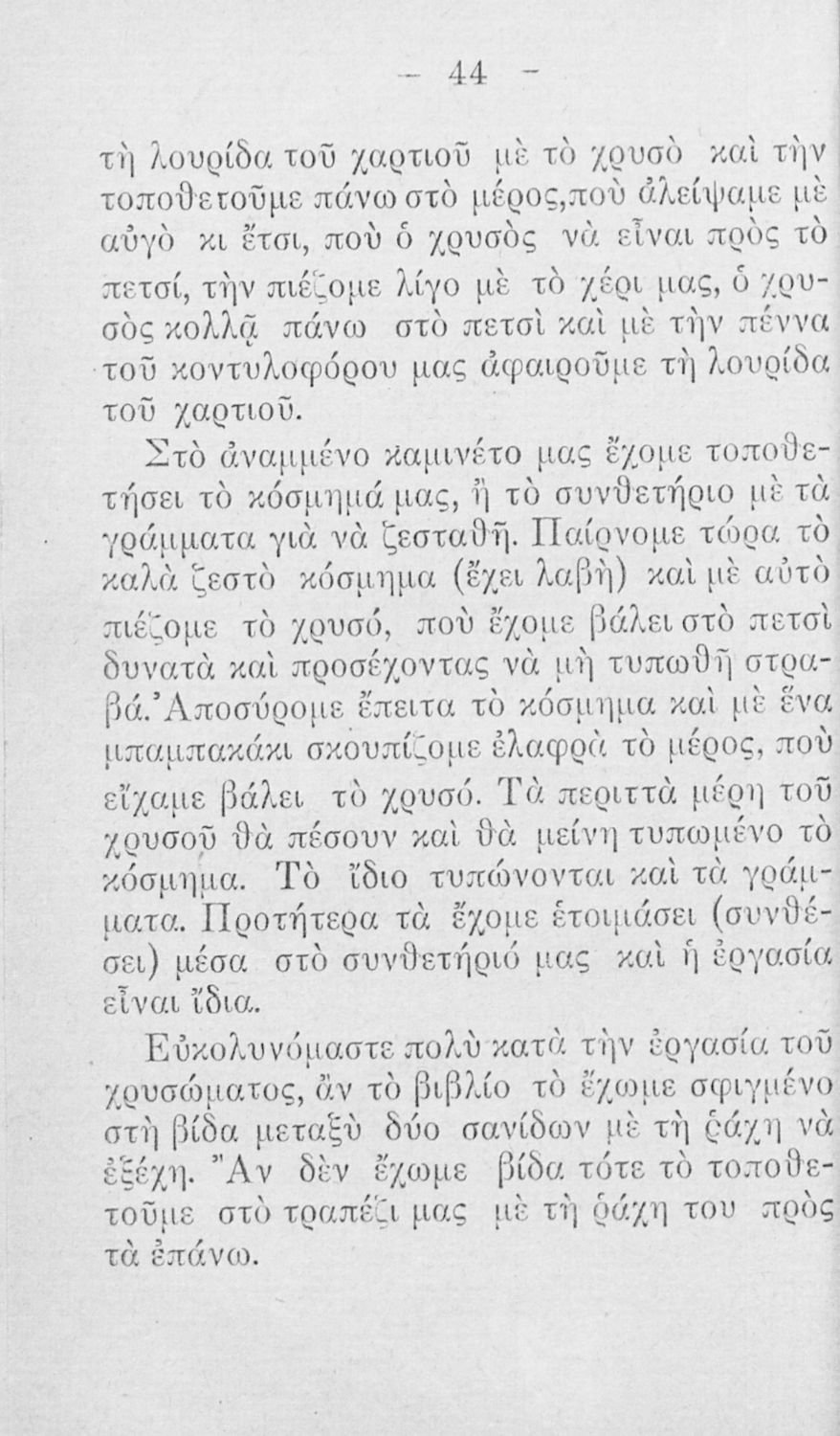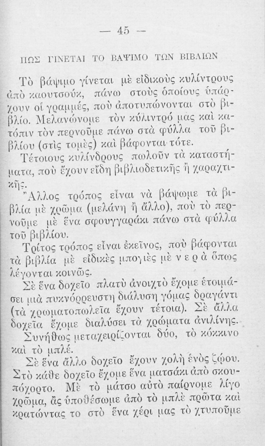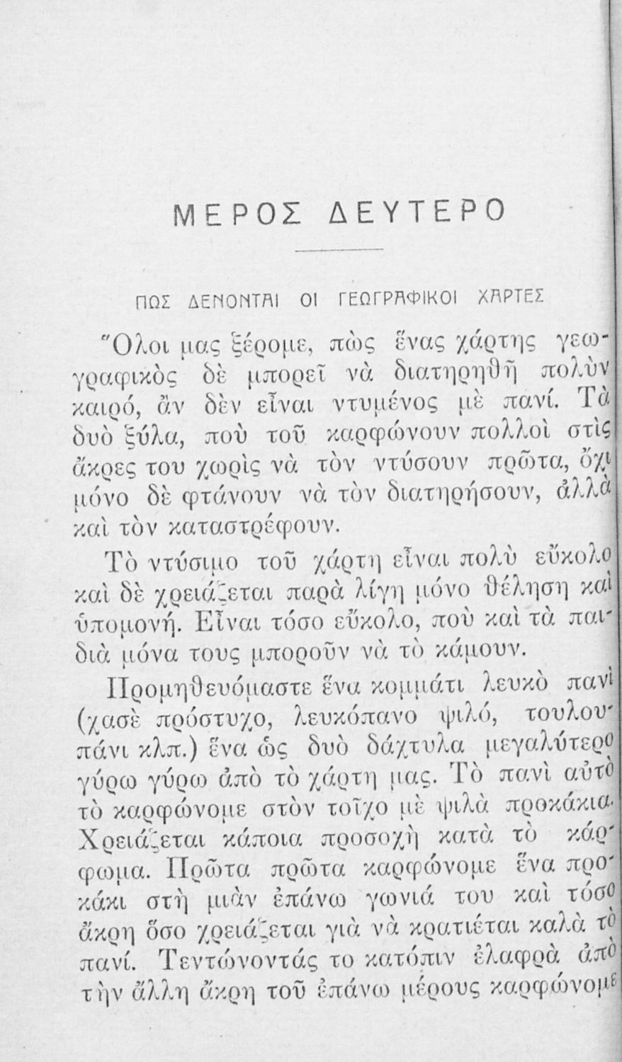 Σχολικό εγχειρίδιο Χειροτεχνίας και Βιβλιοδετικής για τις τάξεις του Δημοτικού. Το βιβλίο περιέχει πρακτικές οδηγίες ραψίματος και βιβλιοδεσίας. Στο δεύτερο μέρος, το βιβλίο αναφέρεται στο δέσιμο των γεωγραφικών χαρτών.