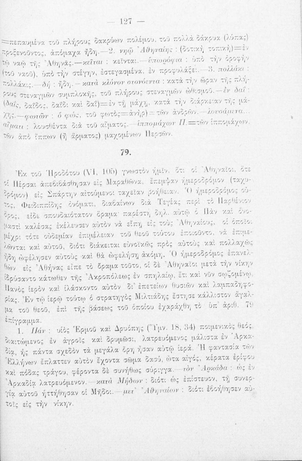 Μαθητικό βοήθημα Αρχαίων Ελληνικών Γ΄ Γυμνασίου που περιλαμβάνει εισαγωγή στη διάλεκτο του Ηρόδοτου, κείμενο, ερμηνευτικά, γραμματικά και συντακτικά σχόλια.
